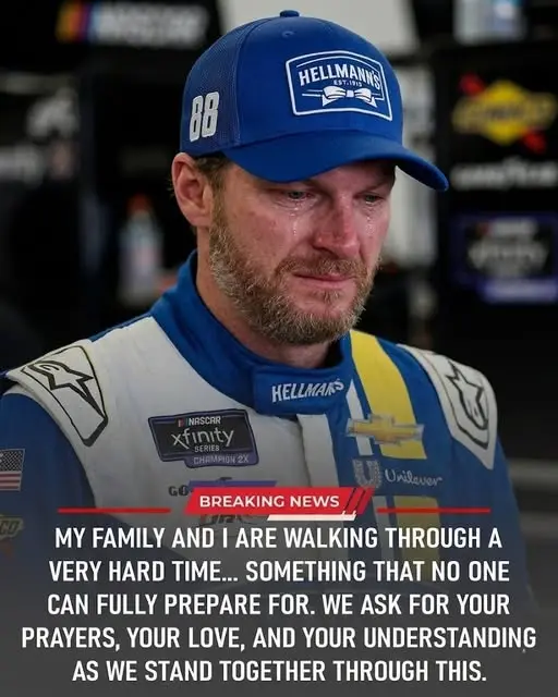 A heartbreaking moment unfolded recently when NASCAR legend Dale Earnhardt Jr. shared deeply emotional news that left fans, fellow drivers, and the entire motorsports community in stunned silence. The voice that once roared with the thunder of 500-horsepower engines now trembled with raw vulnerability as he spoke not about lap times, checkered flags, or championship battles, but about something far more personal: family, love, and the profound pain of loss.