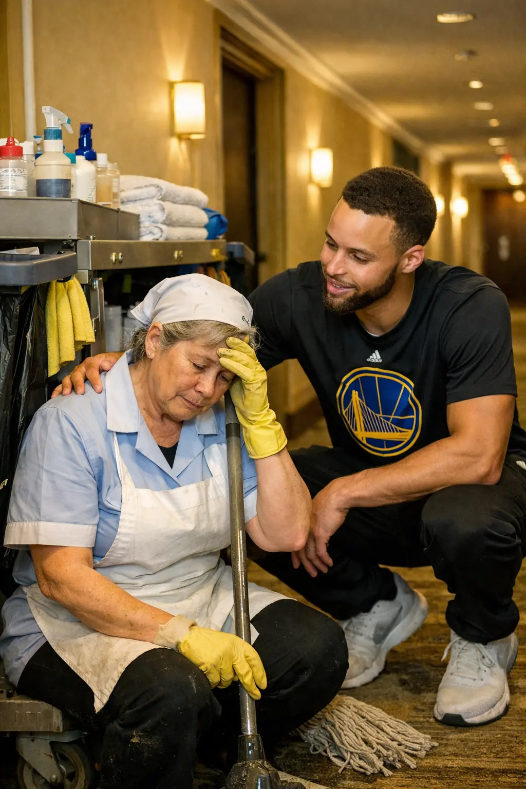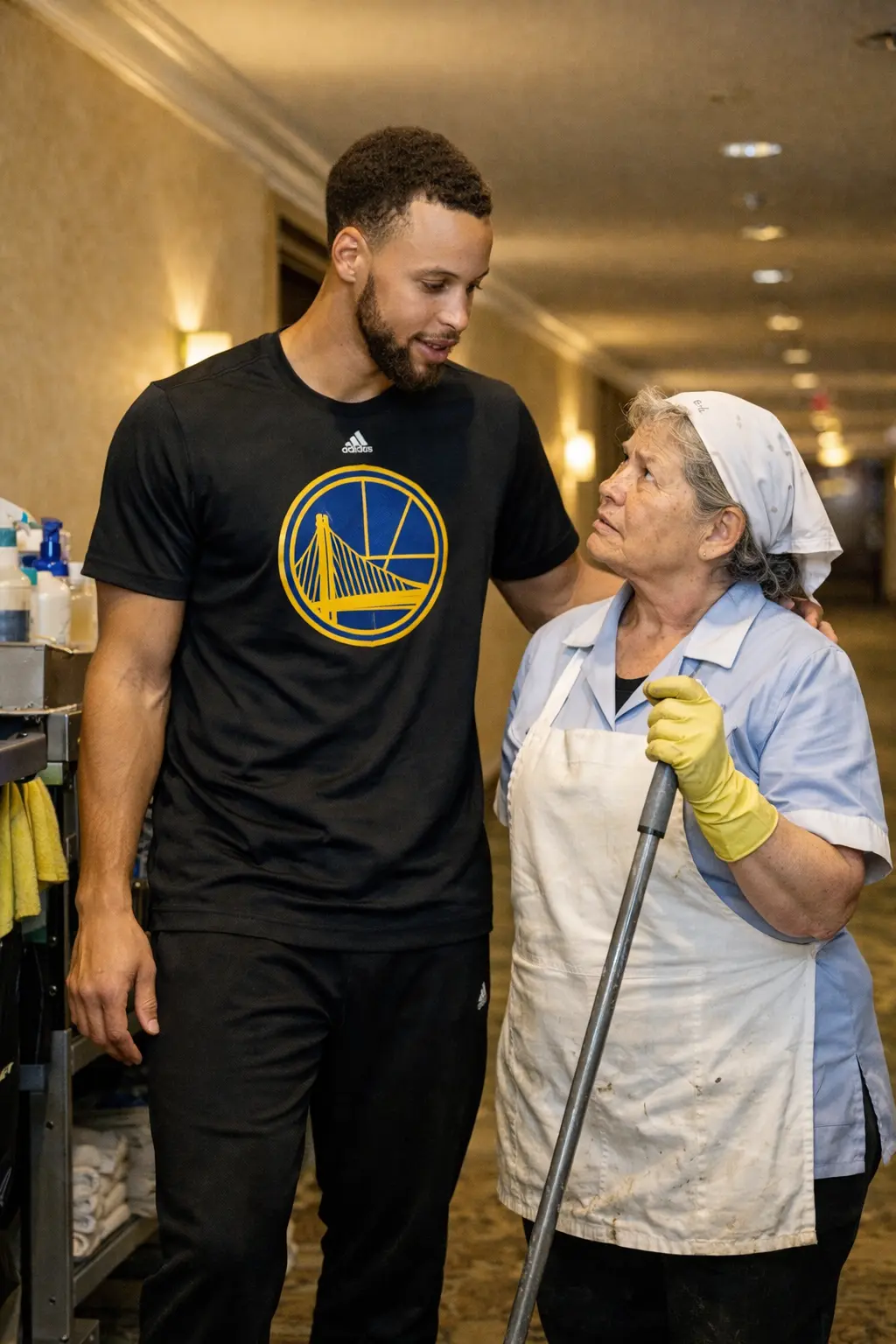 Instead of heading straight to rest, Curry approached the housekeeper and began a conversation, listening patiently as she spoke about her family, daily life, and the challenges she faced balancing work and caring for her grandchildren.