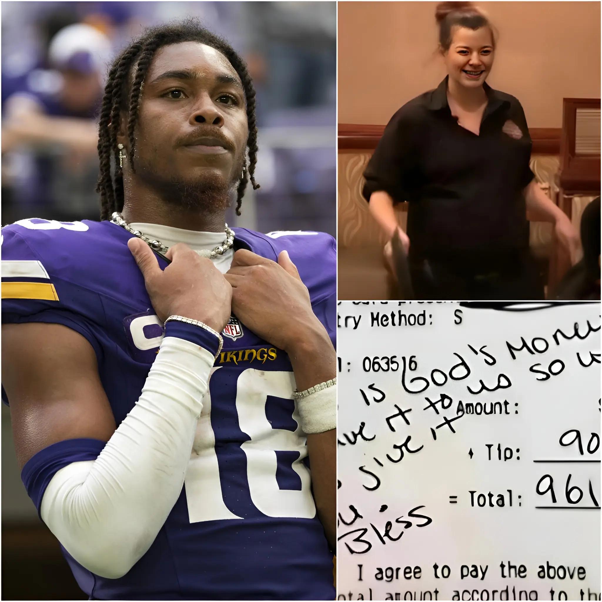 Curious, she unfolded the bill and looked at the note inside. It wasn’t just a tip—it was a message. Justin Jefferson had written a few words that, at first glance, seemed like a simple thank-you note, but they held so much more. The note read, “You’ve got this.