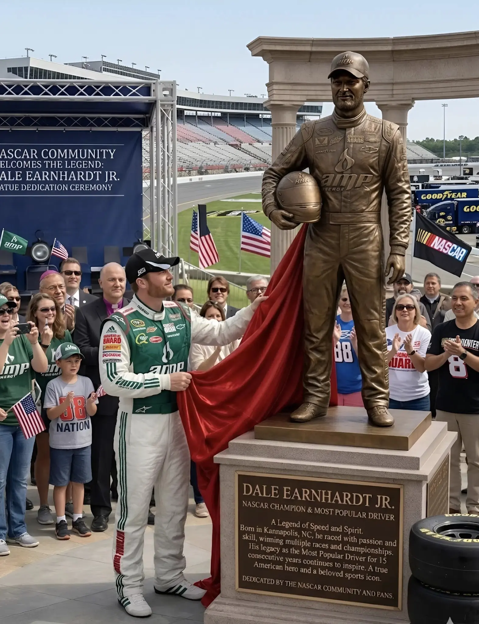 In the end, the bronze figure standing tall is more than a work of art—it is a symbol of legacy. It reminds everyone who passes by that true icons are not defined solely by their accomplishments, but by the way they inspire others to believe, to persevere, and to dream. And in that sense, Dale Earnhardt Jr.’s legacy is far from set in stone—it is alive, evolving, and continuing to fuel the passion of racing fans for generations to come.