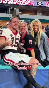 His mother, Tracy Beck, provided the emotional foundation. A former professional dancer for the NBA’s Washington Bullets (now Wizards) and a University of Maryland alum, Tracy balanced her own career while supporting Carson’s youth football dreams. Stories of her unwavering presence at games—cheering in Georgia red during his Bulldogs days and later Hurricanes colors—highlight her role as the family’s heart. She often shared tearful, proud messages on social media, like her emotional note before the national title game: “Dreams do come true. I believe in you and am so proud of you.”