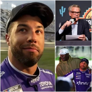 The NASCAR media room was still vibrating with engine echoes when Bubba Wallace strode to the podium, visor tucked under his arm, eyes…