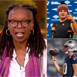 🚨 NATIONAL SHOCKWAVE: “He’s just a football player” — Whoopi Goldberg’s remark instantly backfired when Patriots QB Drake Maye stared into the camera…