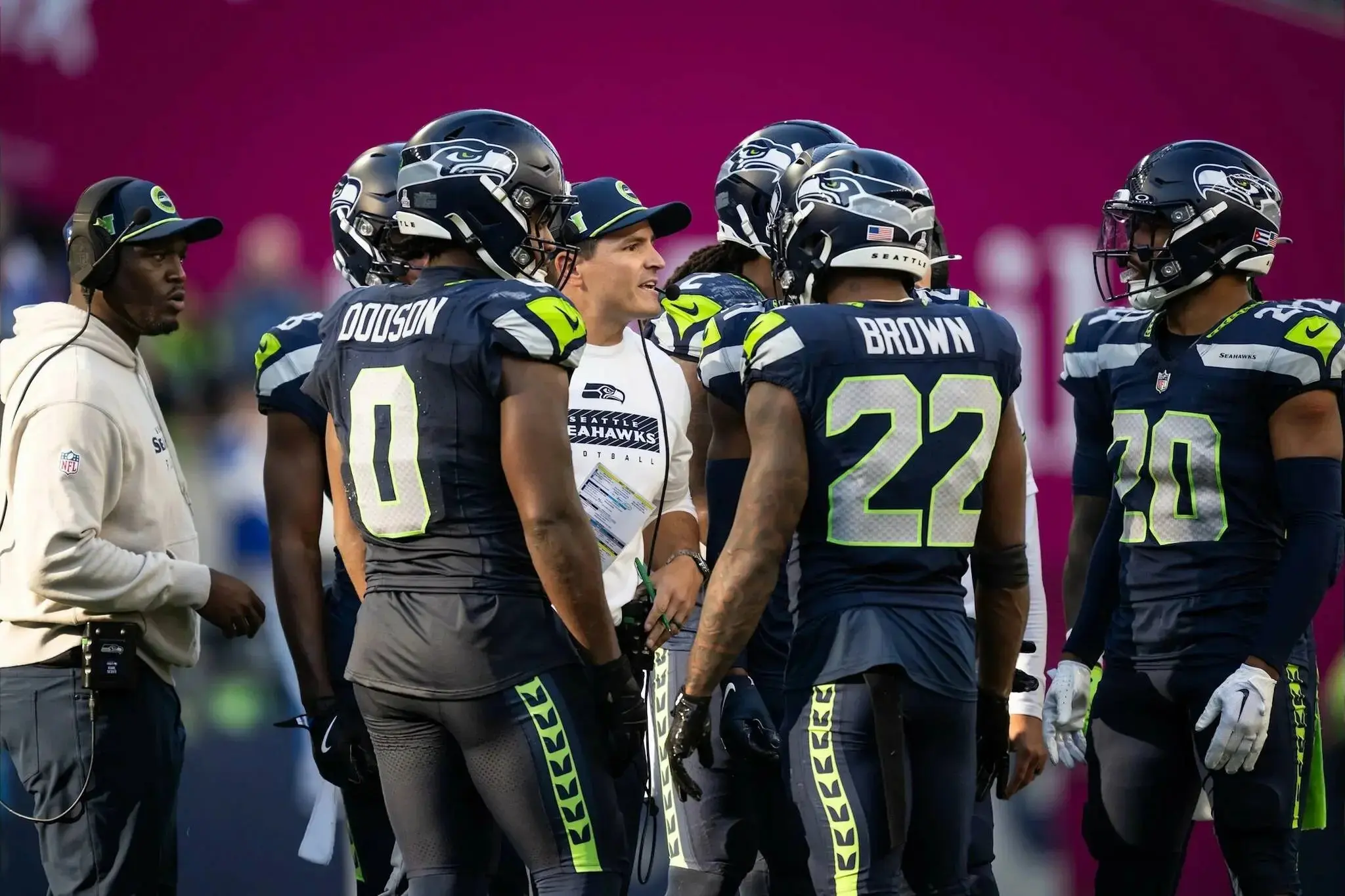 The simplicity struck deep. Twenty-one words, delivered without fanfare, encapsulated the essence of Macdonald’s leadership: gratitude, perspective, and unbreakable team love. Players stood motionless, some wiping their faces, others nodding in quiet agreement. Quarterback Geno Smith later described it as “the most real moment I’ve had in football.” Linebacker Ernest Jones IV, no stranger to emotional highs and lows, called it “the kind of thing that stays with you forever.”