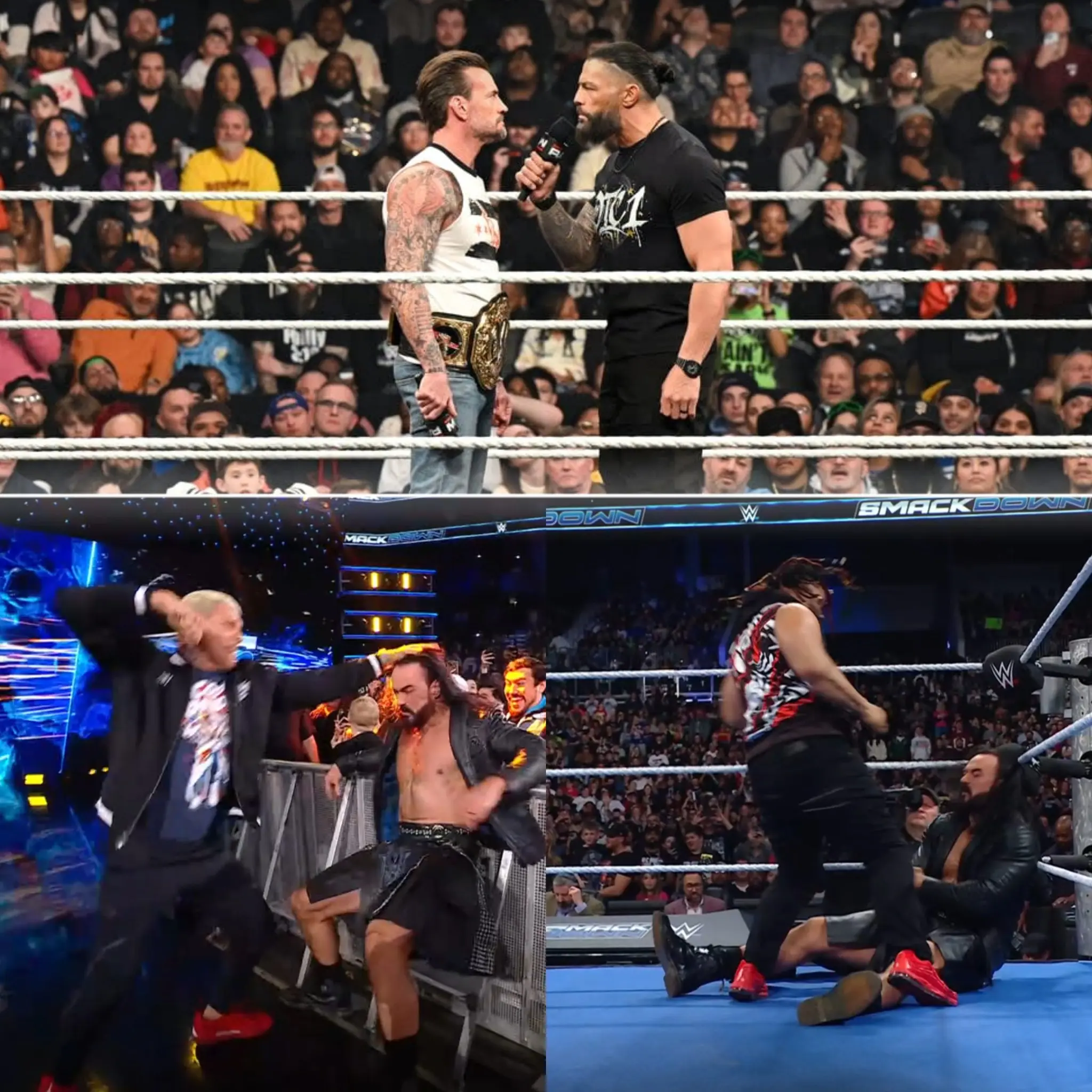 The chaos began with Roman Reigns, who didn’t even need to throw a punch to make his presence felt, verbally dismantling Drew with cold confidence and perfectly timed sarcasm that drew loud reactions from the crowd.