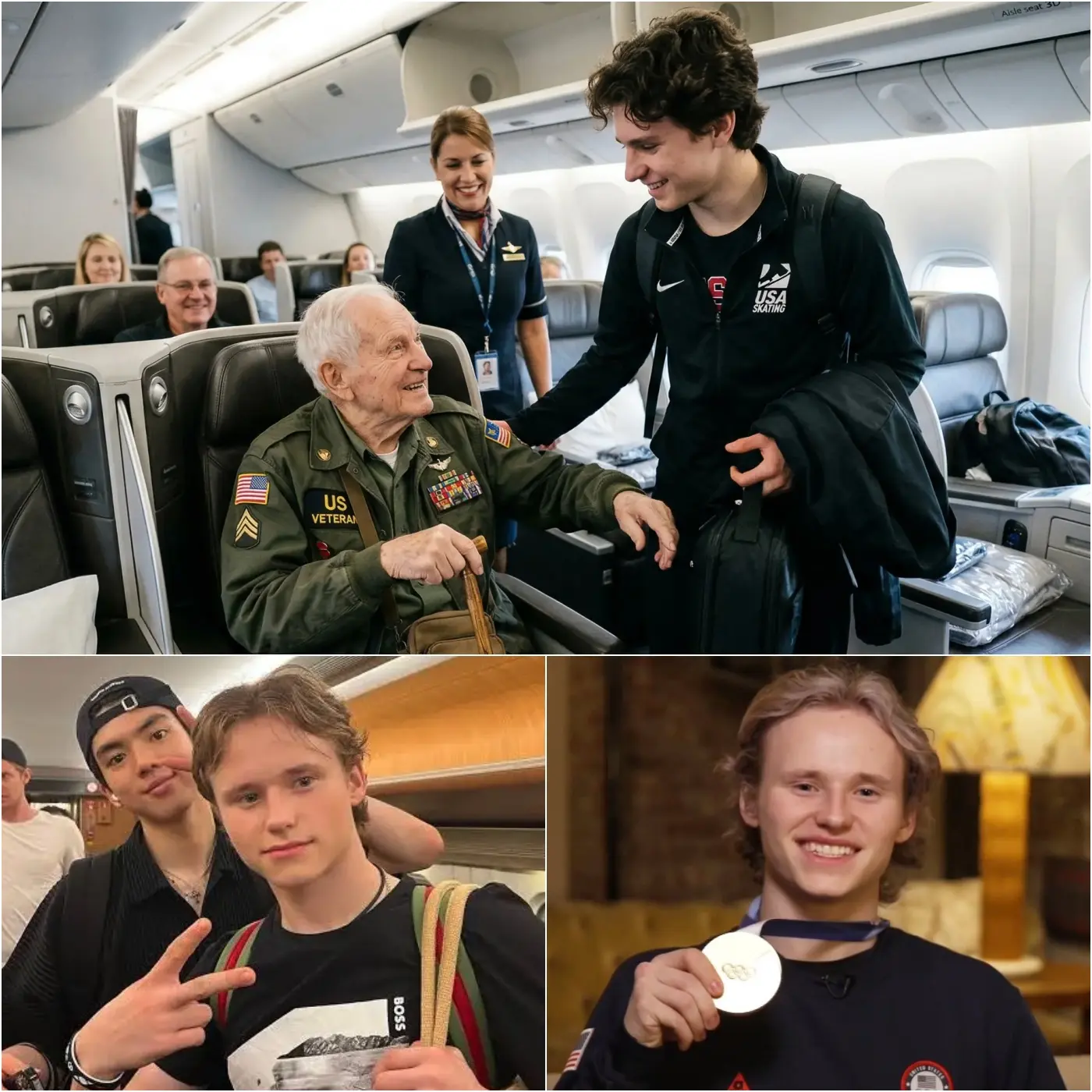 “He didn’t make a big deal out of it,” one passenger recounted in a widely shared social media post. “He just tapped the veteran on the shoulder, smiled, and said something like, ‘Sir, you’ve earned this more than I have.’ Then he swapped boarding passes right there.” The veteran, visibly moved, initially hesitated but eventually accepted after Malinin insisted. Flight attendants, who had begun final preparations, paused to witness the exchange. What followed, however, elevated the moment from a simple seat swap to something far more profound.