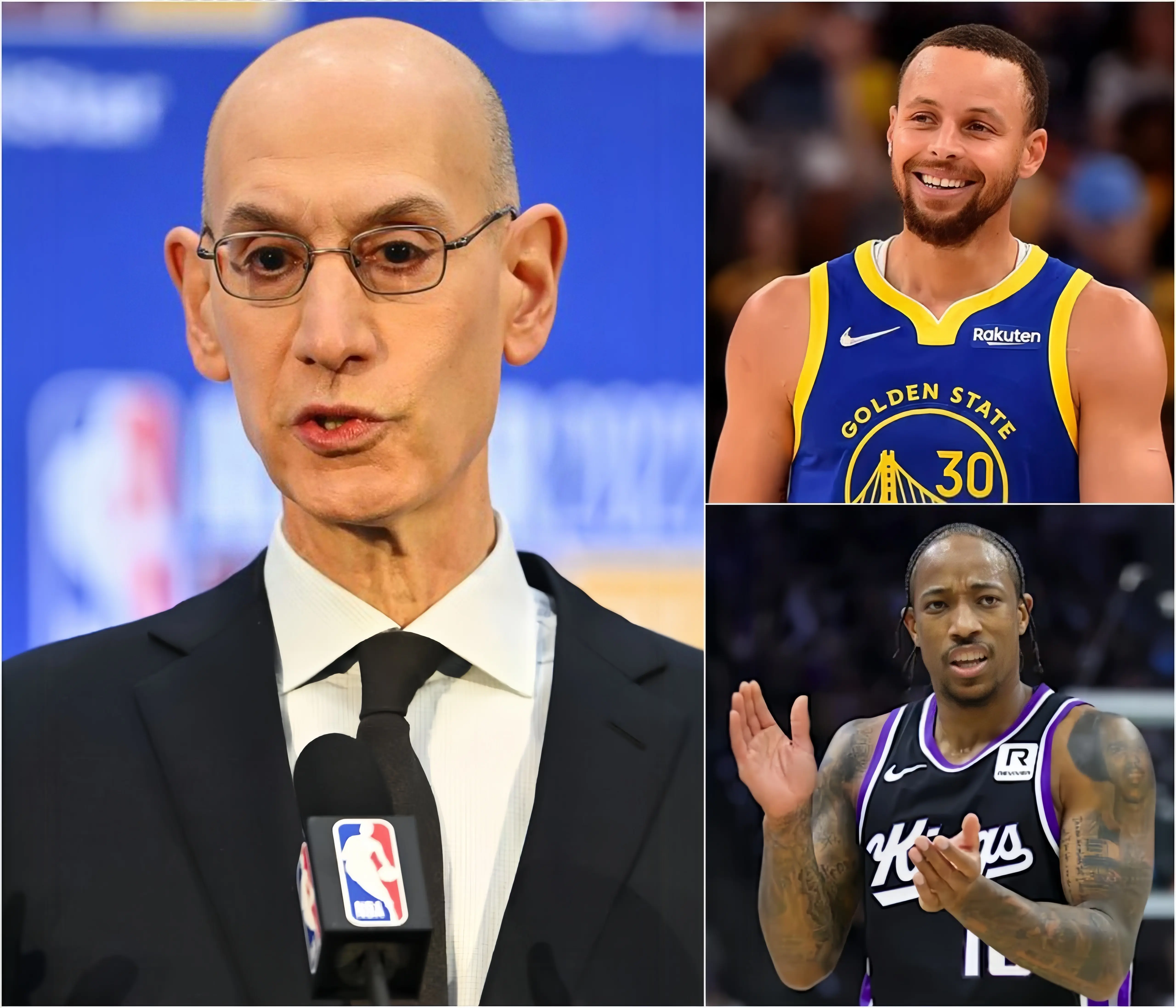 BREAKING NEWS: Adam Silver, the NBA Commissioner, has delivered a shocking and unprecedented punishment following a heated controversy involving Kings star DeMar DeRozan. The league acted swiftly after DeRozan publicly disrespected Stephen Curry ahead of a highly anticipated matchup, sending shockwaves across the basketball world. The penalty is being described as one of the harshest ever issued, signaling zero tolerance for attacks on the league’s biggest icons. Fans and analysts are stunned, as tensions between the Kings and Warriors have now reached a boiling point.