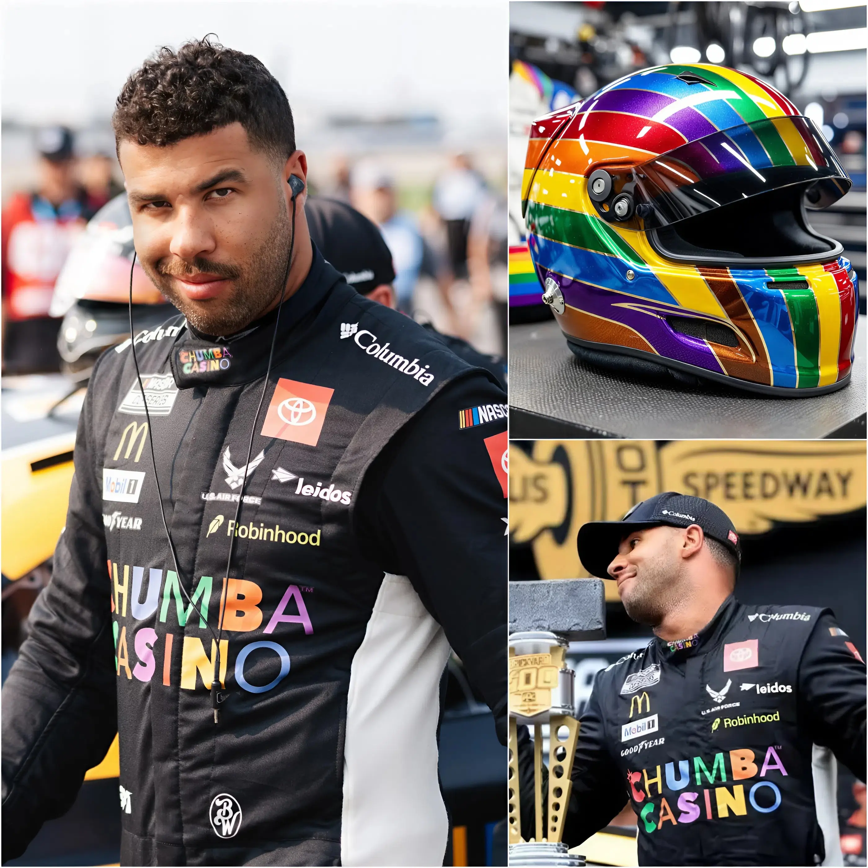 The racing world has been thrown into a storm of controversy after Bubba Wallace, one of the most recognizable figures in NASCAR, reportedly refused to wear a rainbow-themed helmet intended to honor the LGBTQ community. The decision, accompanied by a strong statement about personal values and what he described as the “W.O.K.E agenda,” has ignited an intense debate among fans, sponsors, and members of the motorsport community.