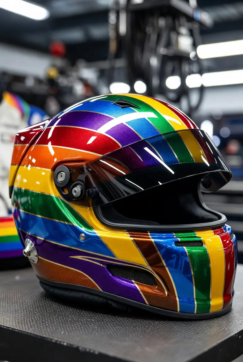 According to early reports circulating within the paddock, the helmet design was part of a broader initiative meant to promote diversity and inclusion during a special race weekend. Rainbow-themed equipment, including helmets and car decals, has occasionally appeared in motorsport campaigns designed to highlight support for the LGBTQ community and reinforce messages of equality within the sport.