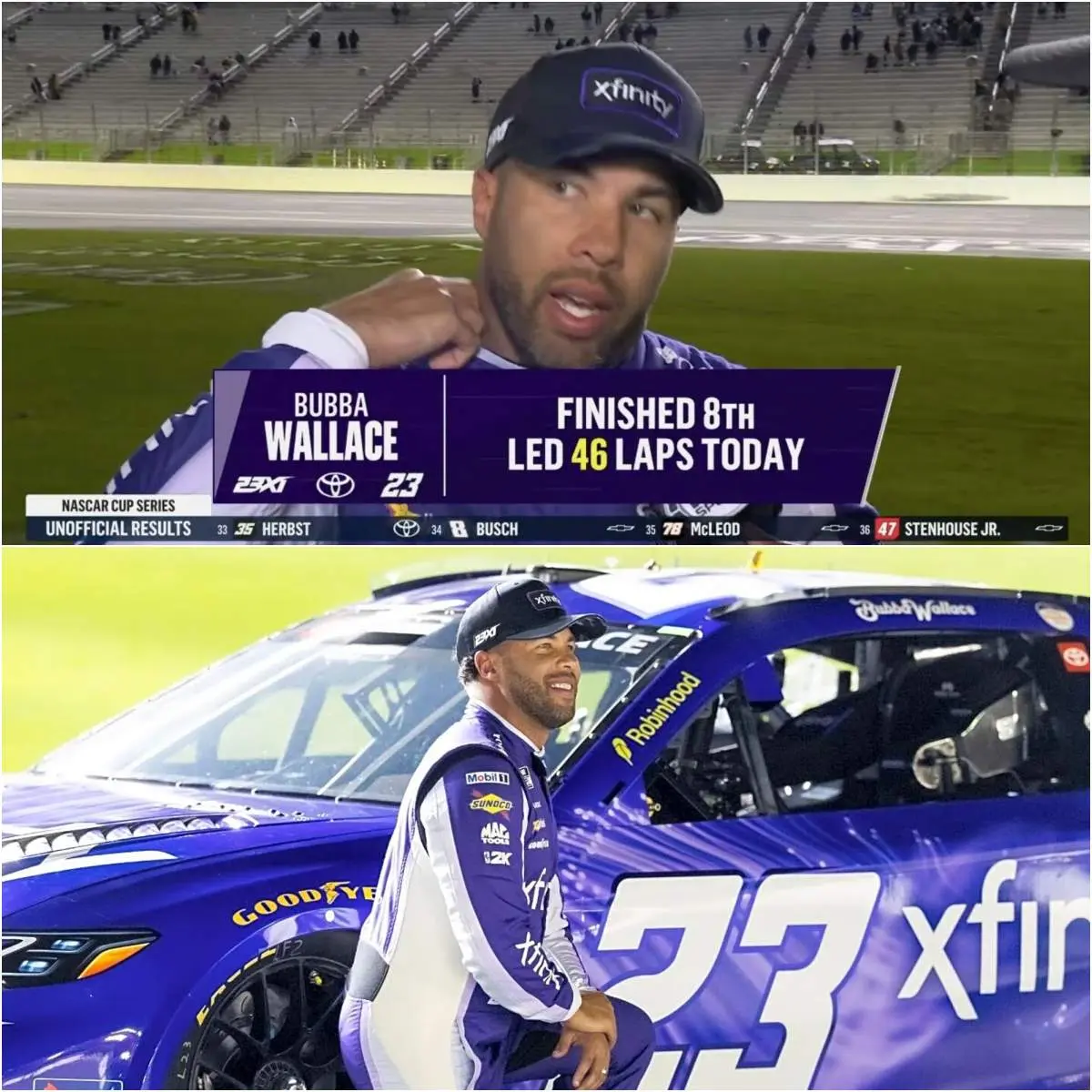 (Note: The original claim appears to reference or adapt a real 2024 incident involving a 50-point deduction for Bubba Wallace and 23XI Racing due to race manipulation at Martinsville, but no matching event with a car inspection violation, cheating on the Toyota Camry XSE, a 50-point drop to last place, or “202 standings” exists in early 2026 NASCAR records. As of February 23, 2026, Wallace is performing strongly early in the season, sitting near the top of the standings after the first two races.)