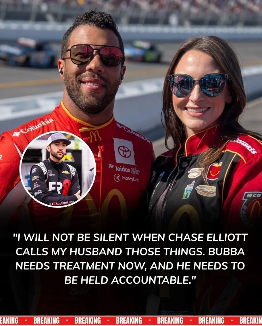 🚨 BREAKING NEWS: Bubba Wallace’s wife has accused Chase Elliott of making racist, derogatory remarks about her husband after his Kansas Speedway win. The explosive claim has shaken the sport and pushed Wallace to seek treatment. Full story 👇