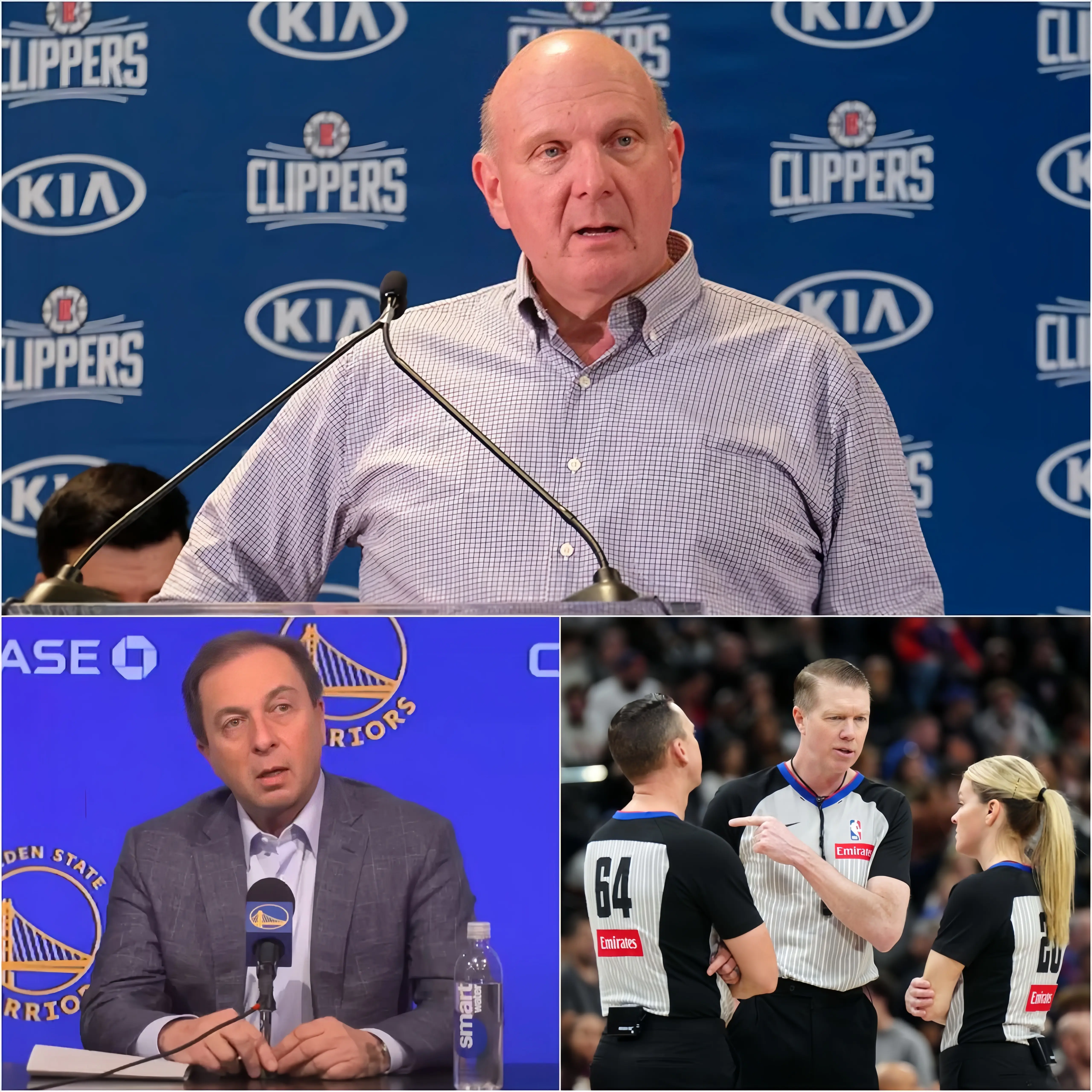 BREAKING NEWS: Los Angeles Clippers owner Steve Ballmer unexpectedly issued an ultimatum to the NBA, demanding a complete change of the officiating team for the upcoming play-in game. He accused the referee of making controversial decisions repeatedly and of indirectly favoring the Golden State Warriors in key matchups, even hinting at the existence of “hidden factors” influencing the officiating. Not satisfied with that, Ballmer warned that the Clippers are prepared to take strong measures if the NBA does not respond.