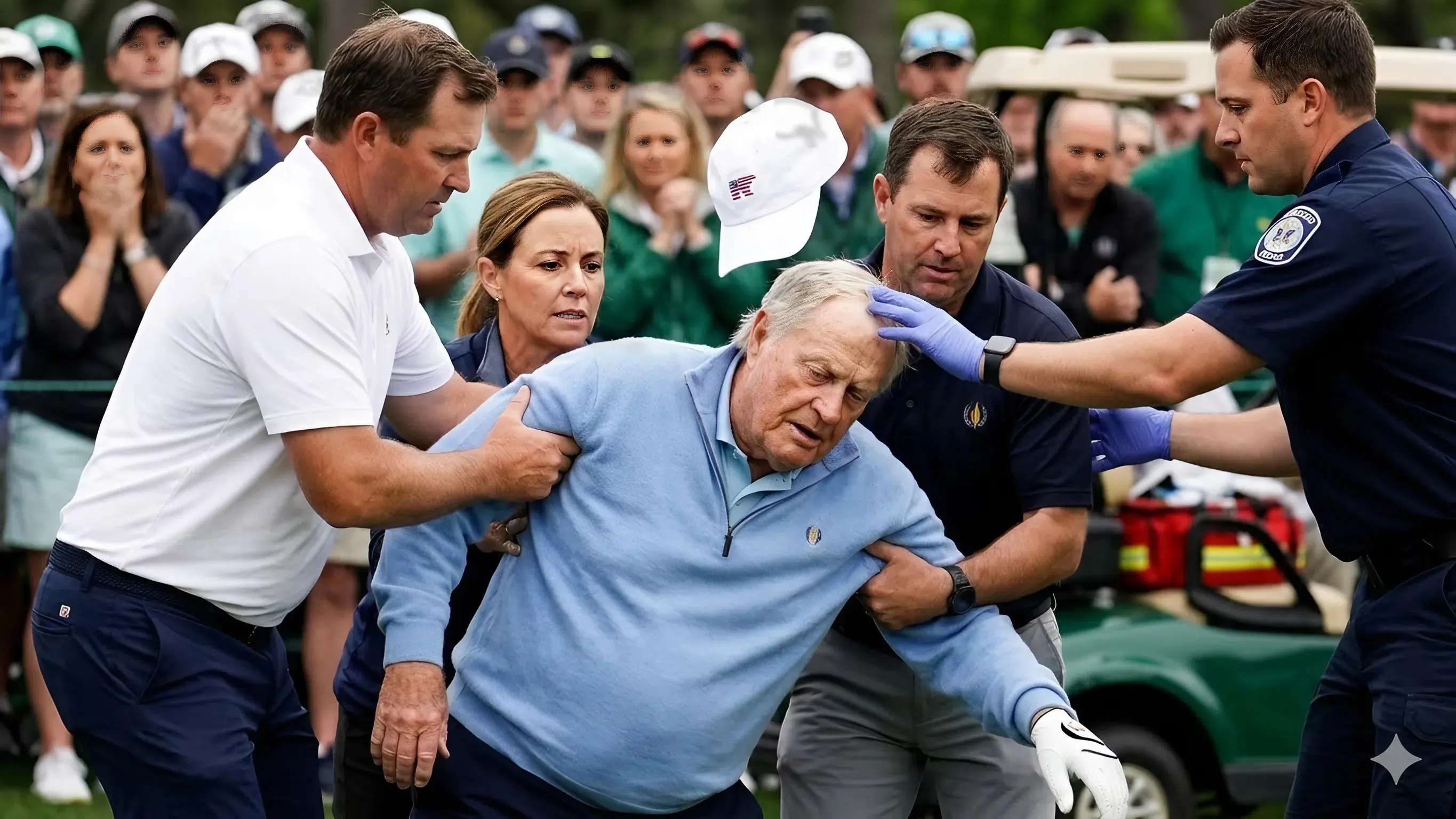 A wave of concern spread through a crowded golf gathering earlier today after legendary golfer Jack Nicklaus, one of the greatest players in the history of the sport, suddenly collapsed during a public appearance. The unexpected incident occurred roughly thirty minutes ago and immediately triggered a rapid response from medical staff and event organizers, while those present watched in stunned silence.