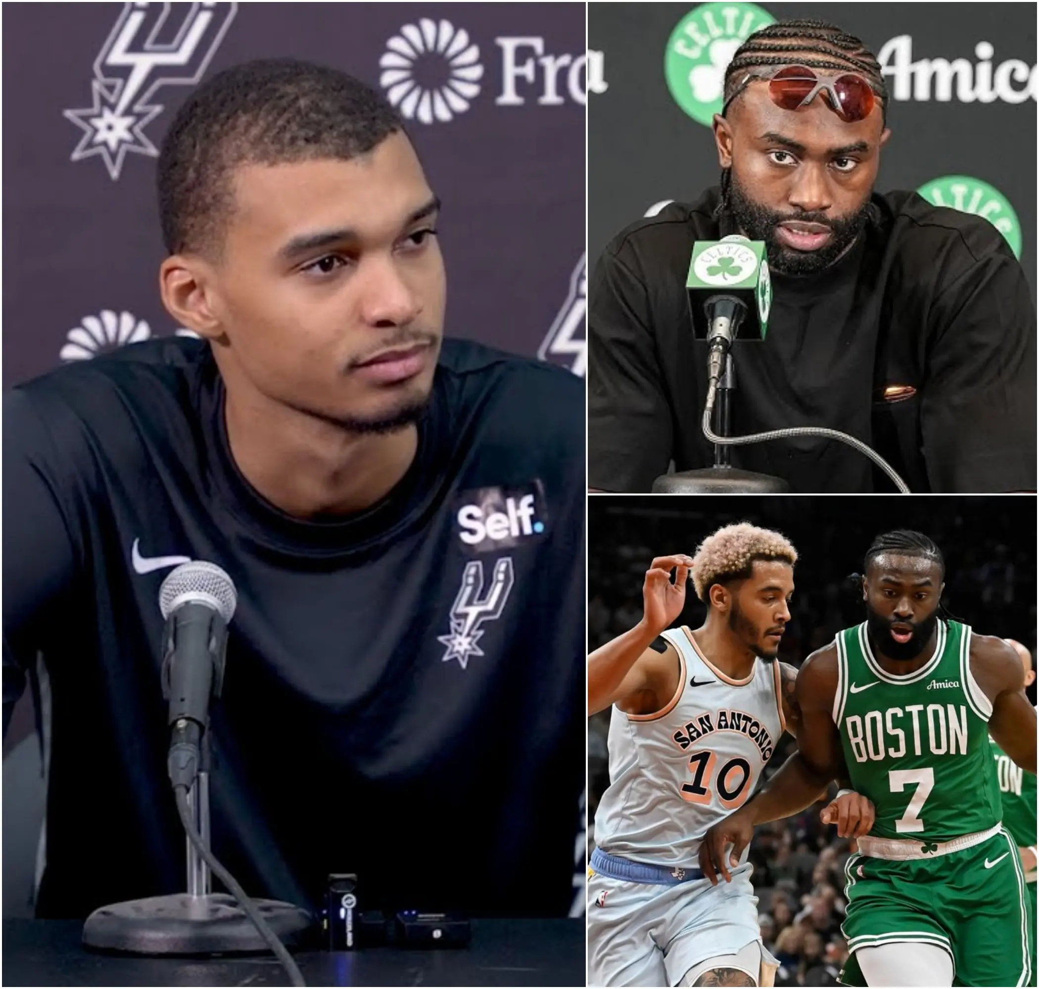 The statement immediately sparked a media firestorm and triggered widespread outrage among Boston fans. Shortly afterward, Jaylen Brown fired back angrily with a razor-sharp 13-word message, directly calling out Wembanyama and the Spurs, leaving them embarrassed in front of the public and NBA media.