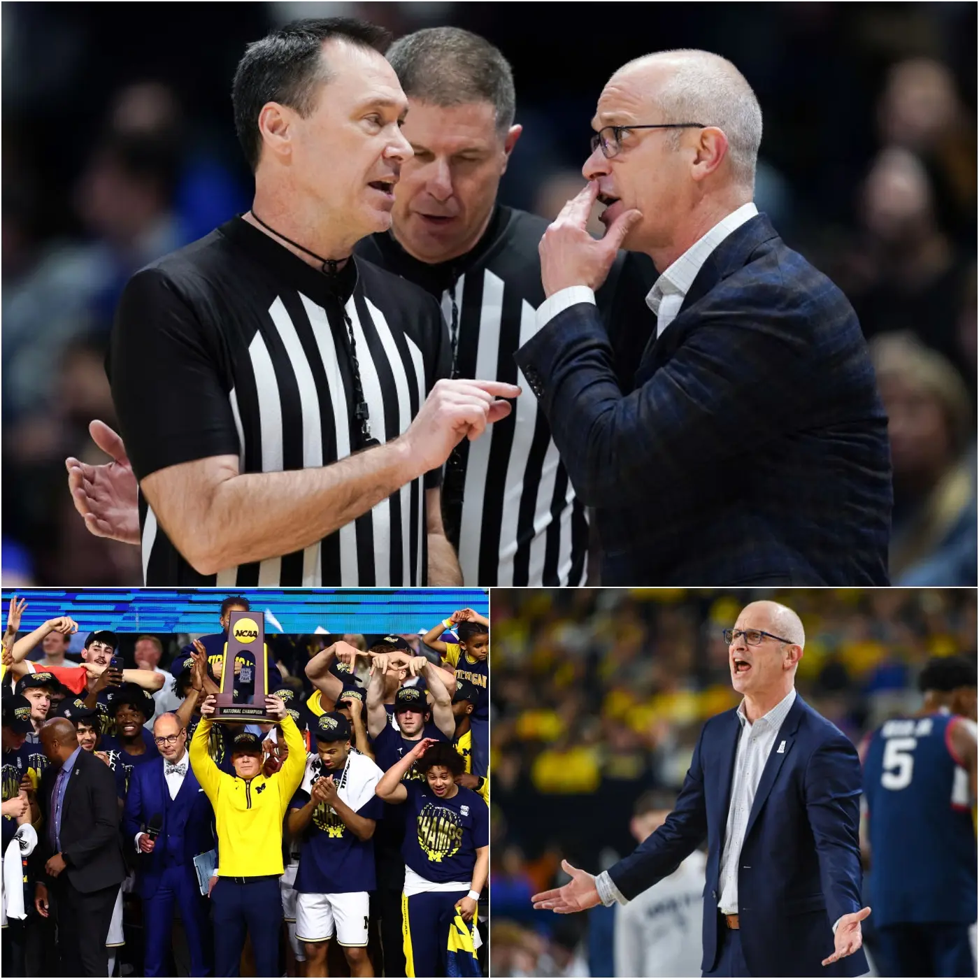 Fifteen minutes after the conclusion of the March Madness Finals between the Michigan Wolverines and the UConn Huskies, officials confirmed that the refereeing crew assigned to the game had been suspended. Not quietly reassigned. Not reviewed behind closed doors. Suspended—pending a formal investigation into what insiders are already calling one of the most controversial officiating performances in recent tournament history.