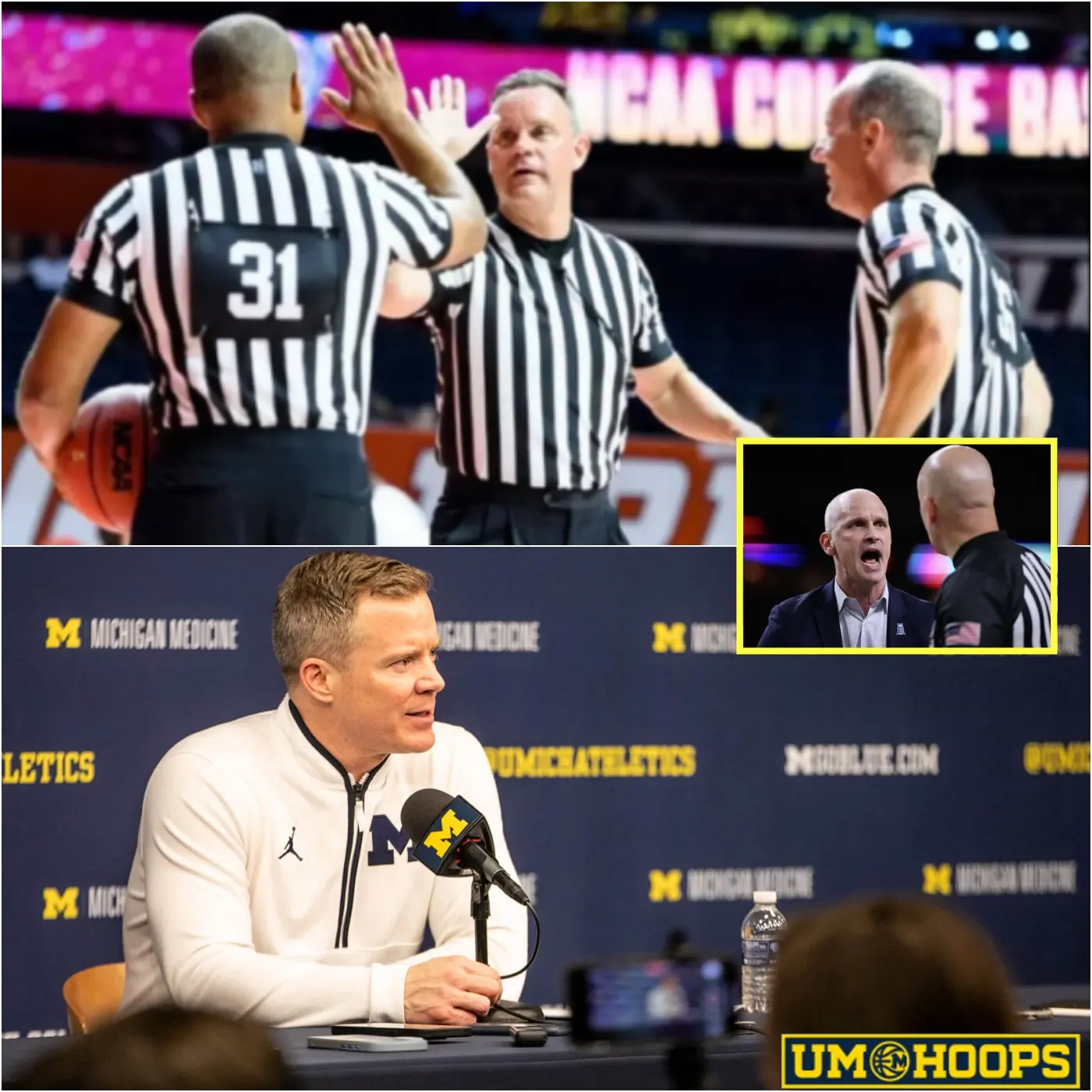 The final whistle had barely faded when the noise began to swell—not from the court, but from the corridors of power that govern college basketball. What unfolded after the Michigan Wolverines’ contentious clash with the UConn Huskies was not just postgame chatter. It was the beginning of a storm that would reach the highest levels of the NCAA and leave three veteran referees sidelined under a cloud of suspicion.