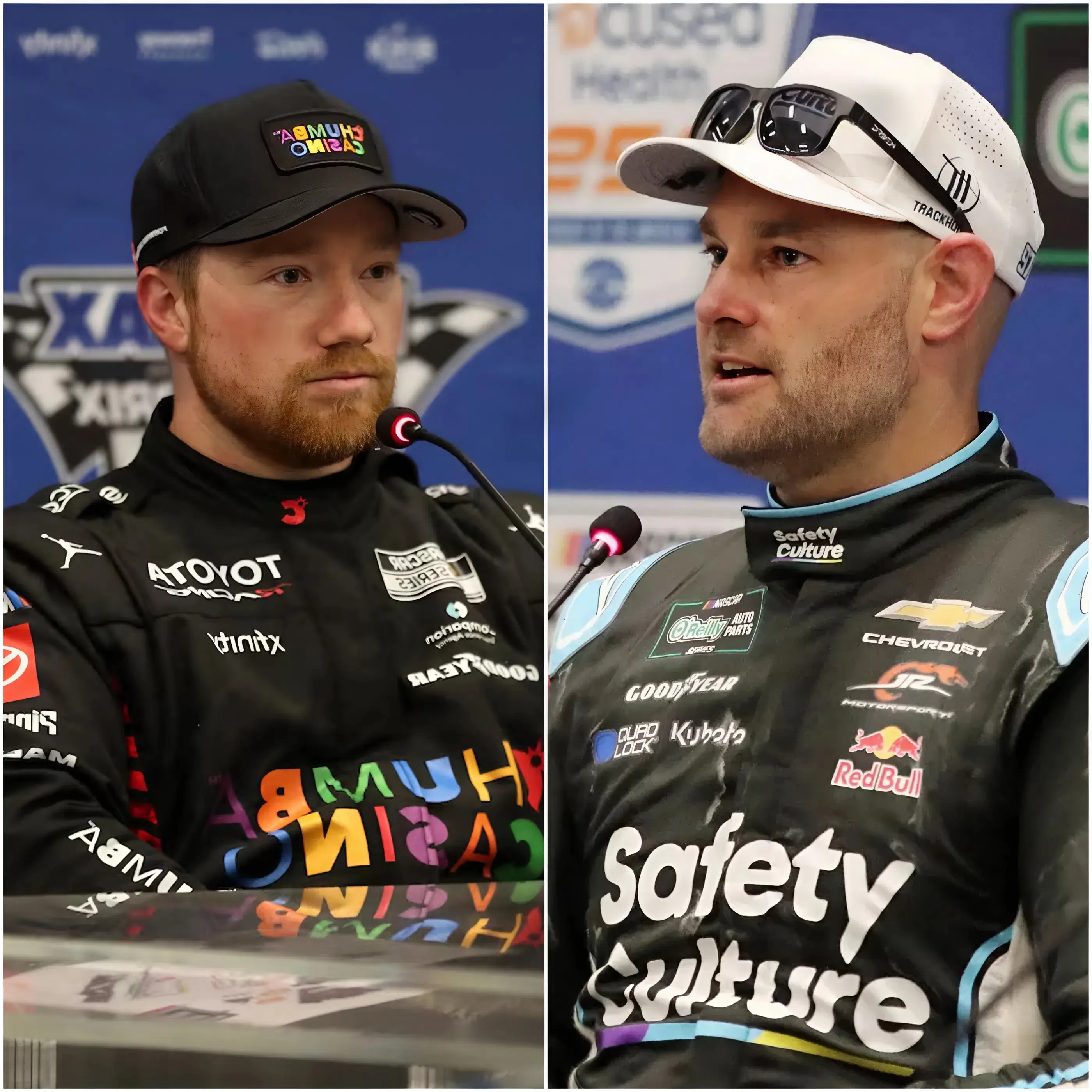 Moments later, the press conference began, drawing reporters from across the motorsports world. Microphones lined the table, cameras rolled continuously, and journalists prepared their questions about the race that had just rewritten NASCAR history.