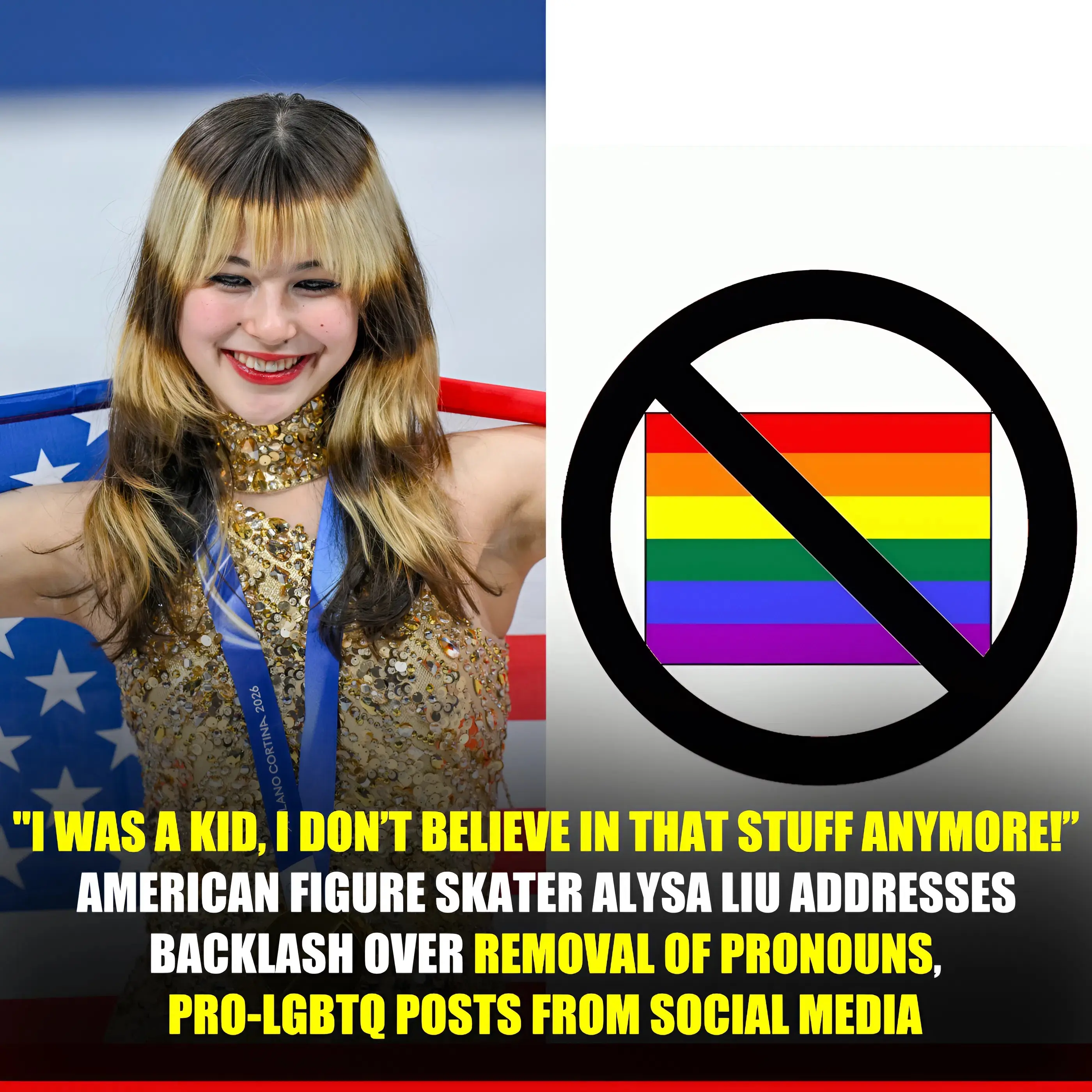 Gone were the “she/they” pronouns that once appeared in her bio—replaced simply with “she/her,” aligning with her official U.S. Figure Skating roster listing. References to Pride Month celebrations, rainbow-themed stories, and supportive messages directed toward the LGBTQ+ community had vanished from her visible content. What began as quiet observation by fans quickly escalated into widespread backlash, accusations of betrayal, and demands for explanation.