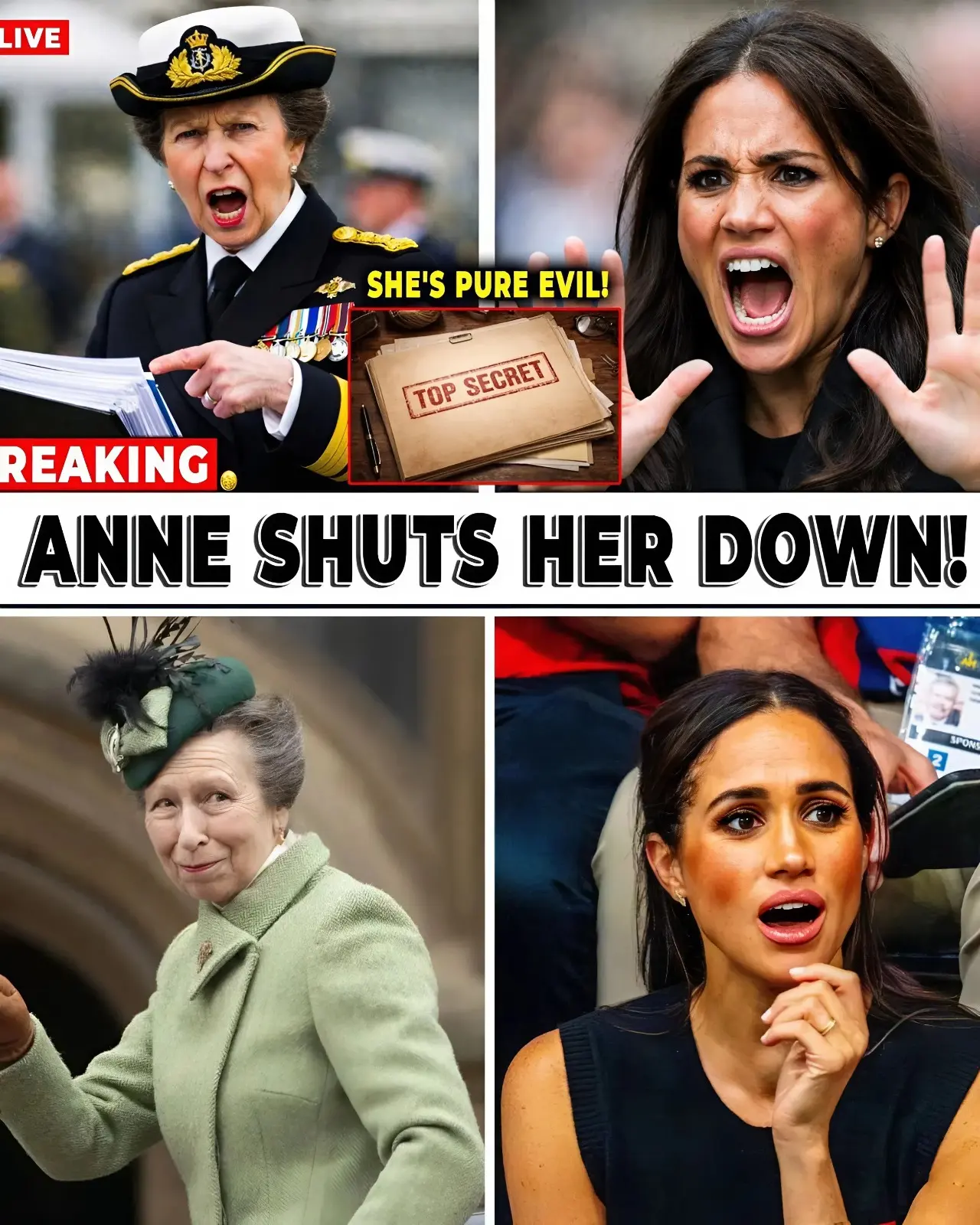 In a stunning turn of events, Princess Anne has reportedly emerged as the key figure dismantling a high-stakes campaign allegedly orchestrated by Meghan Markle to both undermine the British monarchy and advance her own political ambitions. The latest revelations, based on a confidential dossier that Princess Anne has supposedly exposed, outline what is being described as Meghan’s secretive strategies for securing a divorce from Prince Harry and her aspirations to influence political spheres.