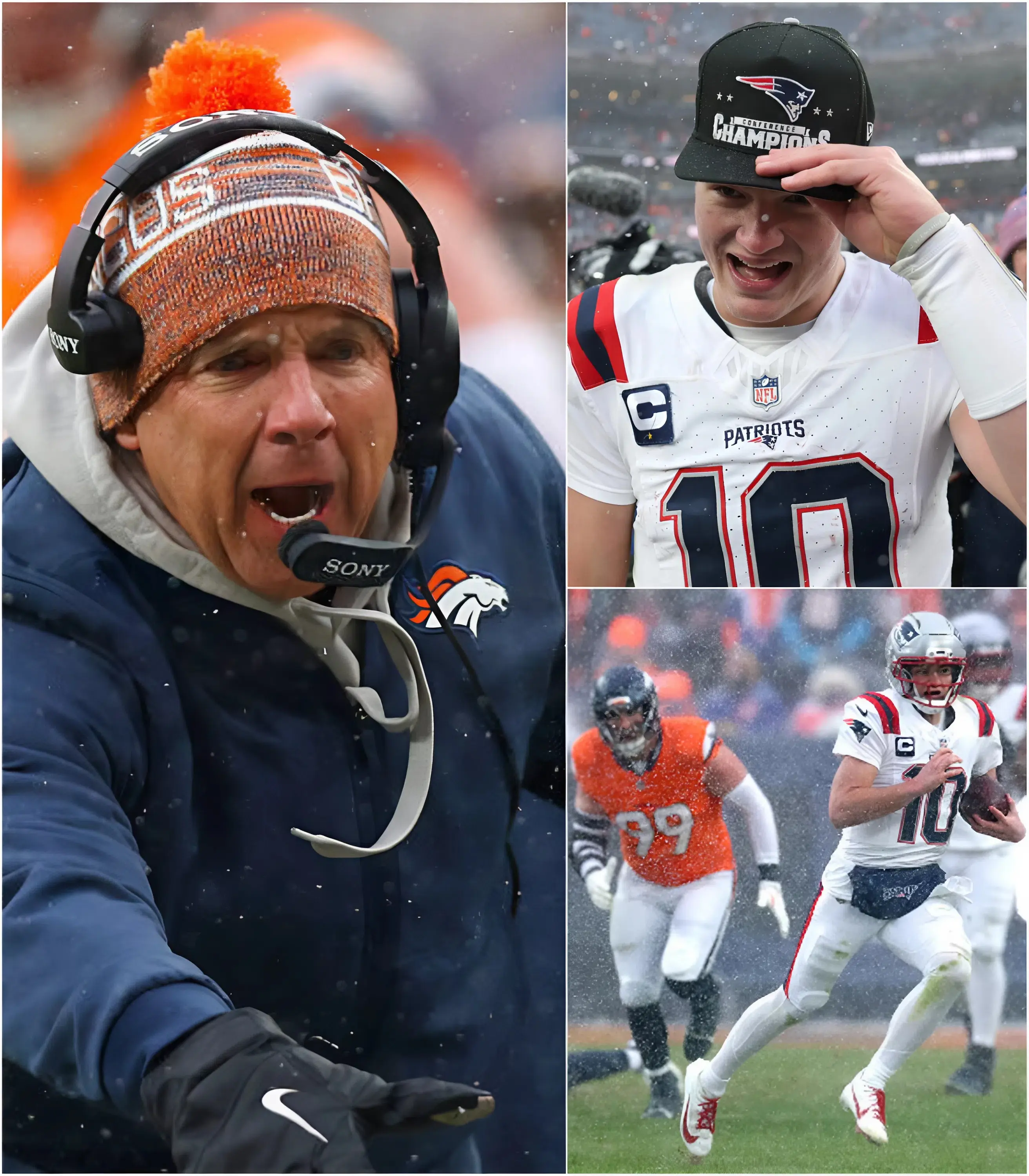 “BRONCOS NATION WON’T FORGET — PATRIOTS QB’S COCKY SMIRK AFTER SNOW WIN!” 🔴 Broncos head coach Sean Payton erupted in raw frustration after the gut-wrenching 7–10 AFC Championship loss in a raging blizzard, bluntly calling out the brutal conditions and his own aggressive 4th-down call that slipped away in the whiteout. The intense postgame emotion ignited massive respect and debates across Broncos Nation. Moments later, Patriots QB Drake Maye stepped to the podium, flashed a smug, ice-cold smile, and delivered one short, arrogant sentence that left Payton momentarily speechless, Broncos players stunned into silence, and the entire NFL world buzzing — but Broncos fans know that smirk won’t stand…