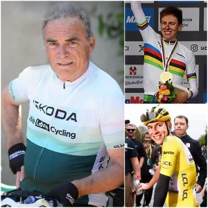 Bernard Hinault verraste Tadej PogaÄŤar plotseling met een klassieke racefiets, voorzien van zijn handtekening en een ontroerende boodschap: “In jou brandt een vlam…