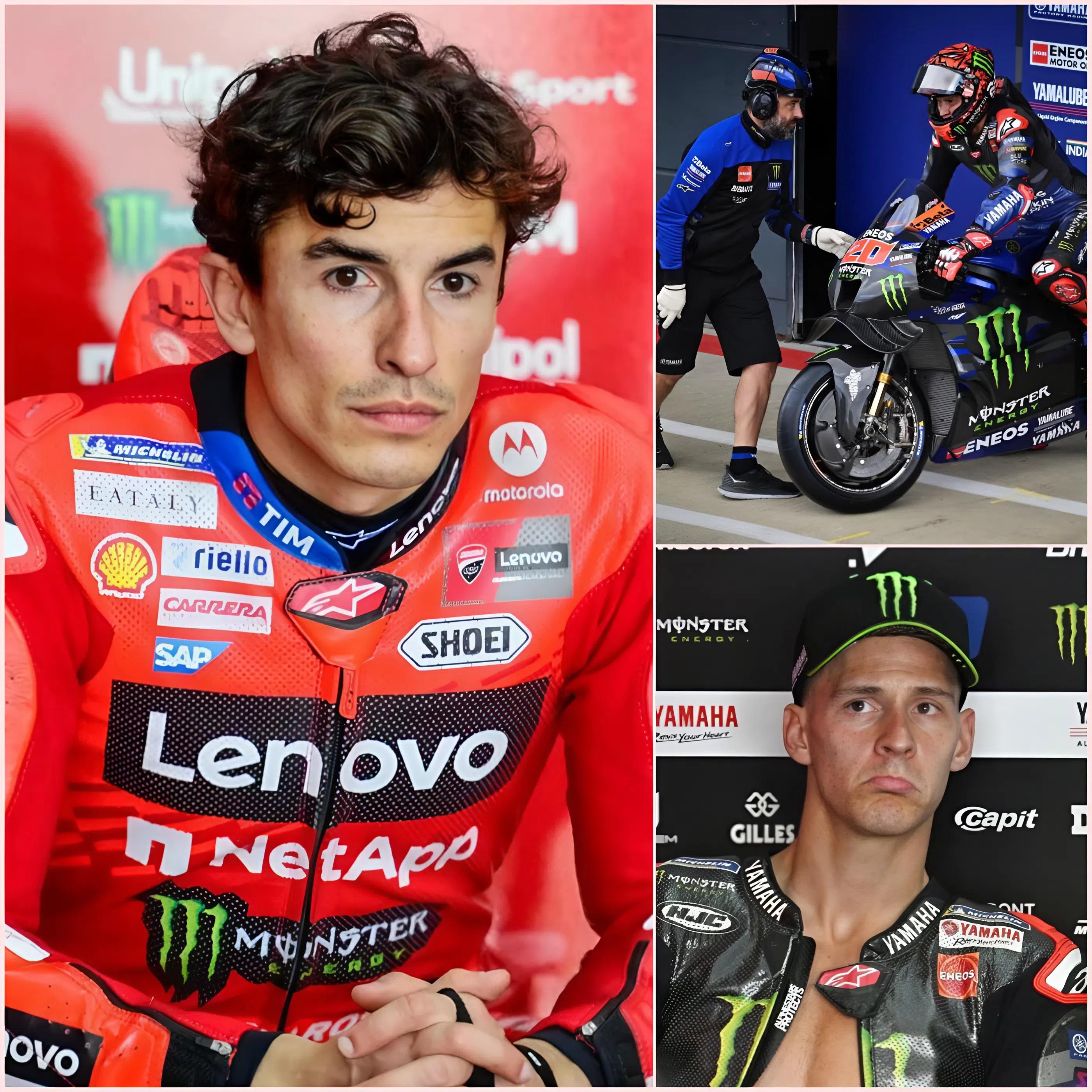Dans une déclaration frappante et d’une franchise inhabituelle, l’octuple champion du monde Marc Márquez a vivement critiqué le projet de Yamaha d’introduire un moteur V4 spécialement pour Fabio Quartararo lors du prochain Grand Prix de Saint-Marin, qualifiant cette décision d’« injuste ». Ses propos ont déclenché une vive polémique dans le paddock. Mais, fidèle à son habitude, Quartararo a répondu par une simple phrase qui a brutalement sidéré la communauté MotoGP mondiale.