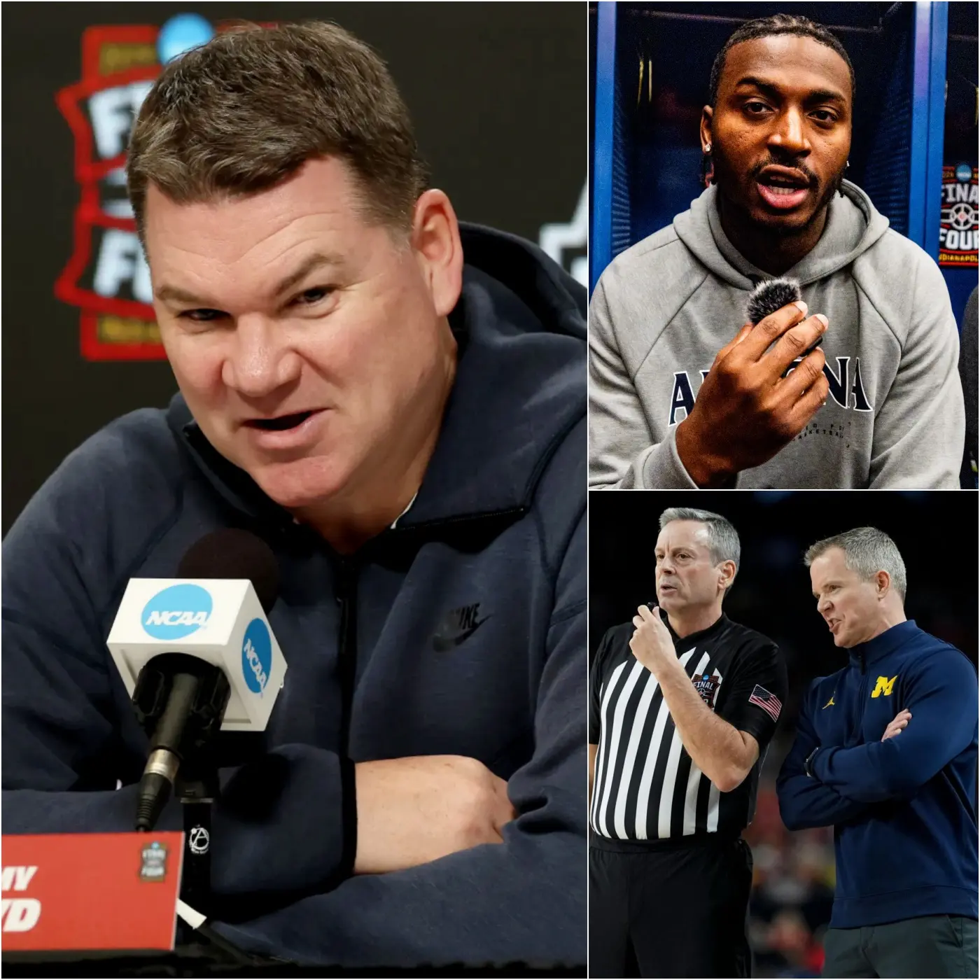 Possession after possession seemed to tilt in Michigan’s favor—not through dazzling plays alone, but through a series of officiating decisions that Arizona supporters would later describe as “impossible to ignore.” Fouls that halted Arizona’s rhythm. No-calls that allowed Michigan to extend theirs. A technical assessment that silenced a brief Wildcats surge. Each moment, taken individually, might have passed without incident. Together, they painted a far more troubling picture.