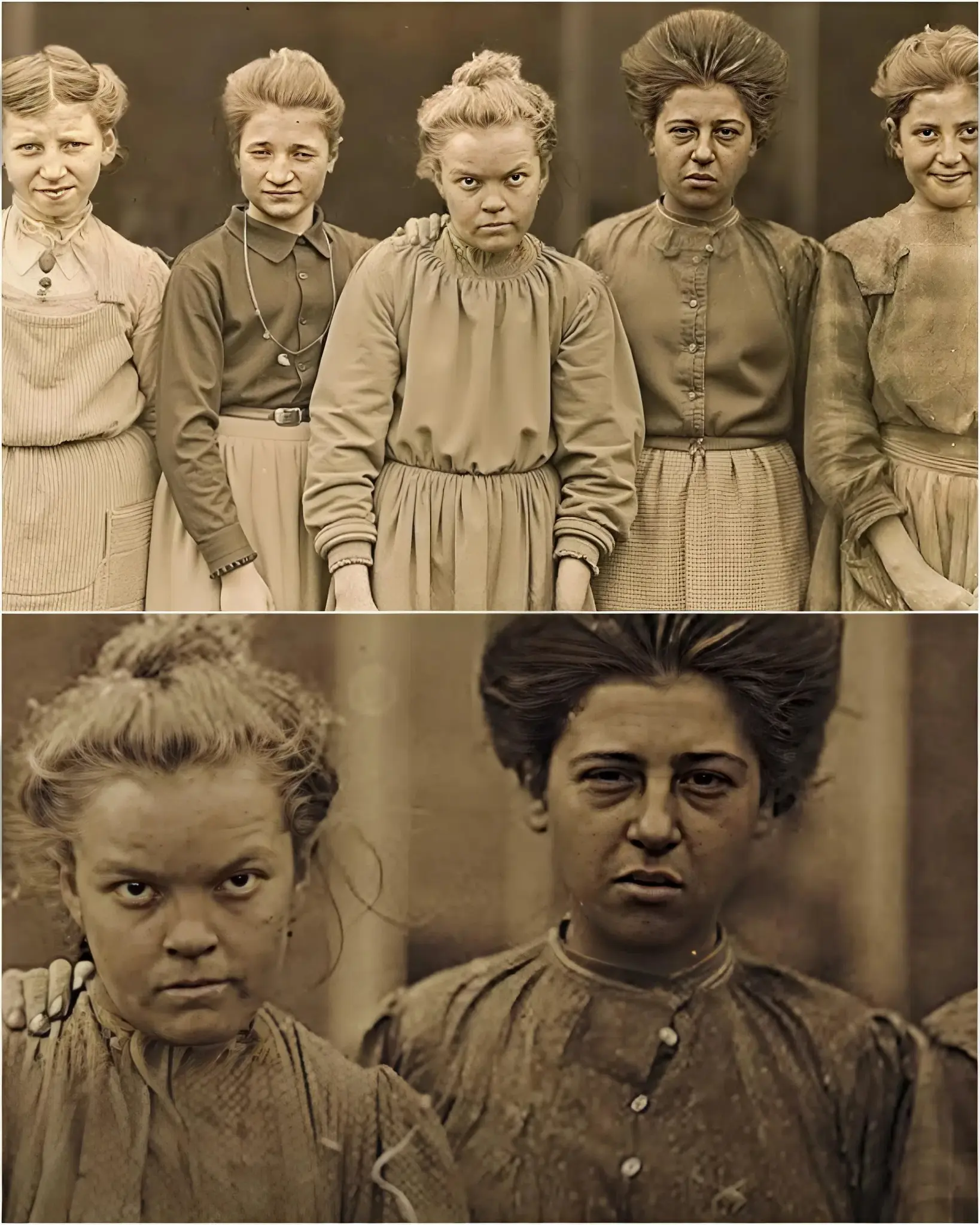 Beim Vergrößern des Fotos bemerkten die Forscher subtile, aber unheimliche Details in den Augen der Schwestern. Einige behaupten, es scheine, als ob die Mädchen den Betrachter direkt beobachten, obwohl es sich um ein statisches Bild handelt. Darüber hinaus entdeckten Experten Schatten und Formen im Hintergrund, die auf den ersten Blick unscheinbar wirken, aber bei genauer Untersuchung ein rätselhaftes Muster ergeben. Einige Historiker spekulieren, dass es sich um frühe Fotografietechniken handelt, die ungewollte Doppelbelichtungen oder Reflexionen erzeugten. Andere wiederum vermuten, dass das Bild bewusst manipuliert wurde, um eine symbolische Botschaft zu vermitteln.