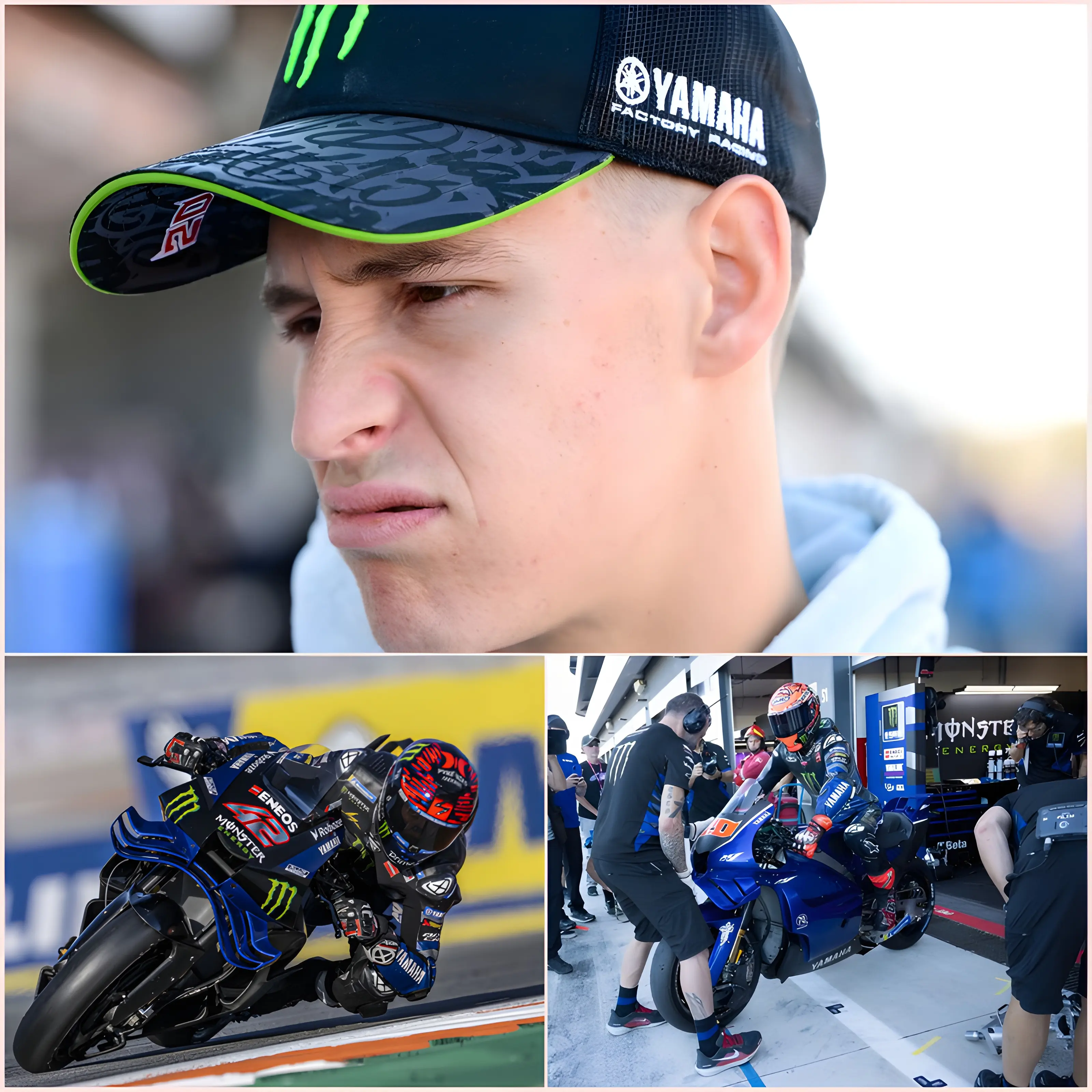 Les caméras ont capturé Quartararo descendant de la moto, le front plissé et les lèvres serrées, loin du sourire triomphant espéré par les fans. Cette expression énigmatique, diffusée en direct sur les réseaux sociaux, est devenue virale en quelques minutes. Les hashtags #QuartararoV4 et #YamahaFuture ont fait le tour du monde, tandis que pilotes, experts et passionnés scrutaient le moindre mouvement de son visage.