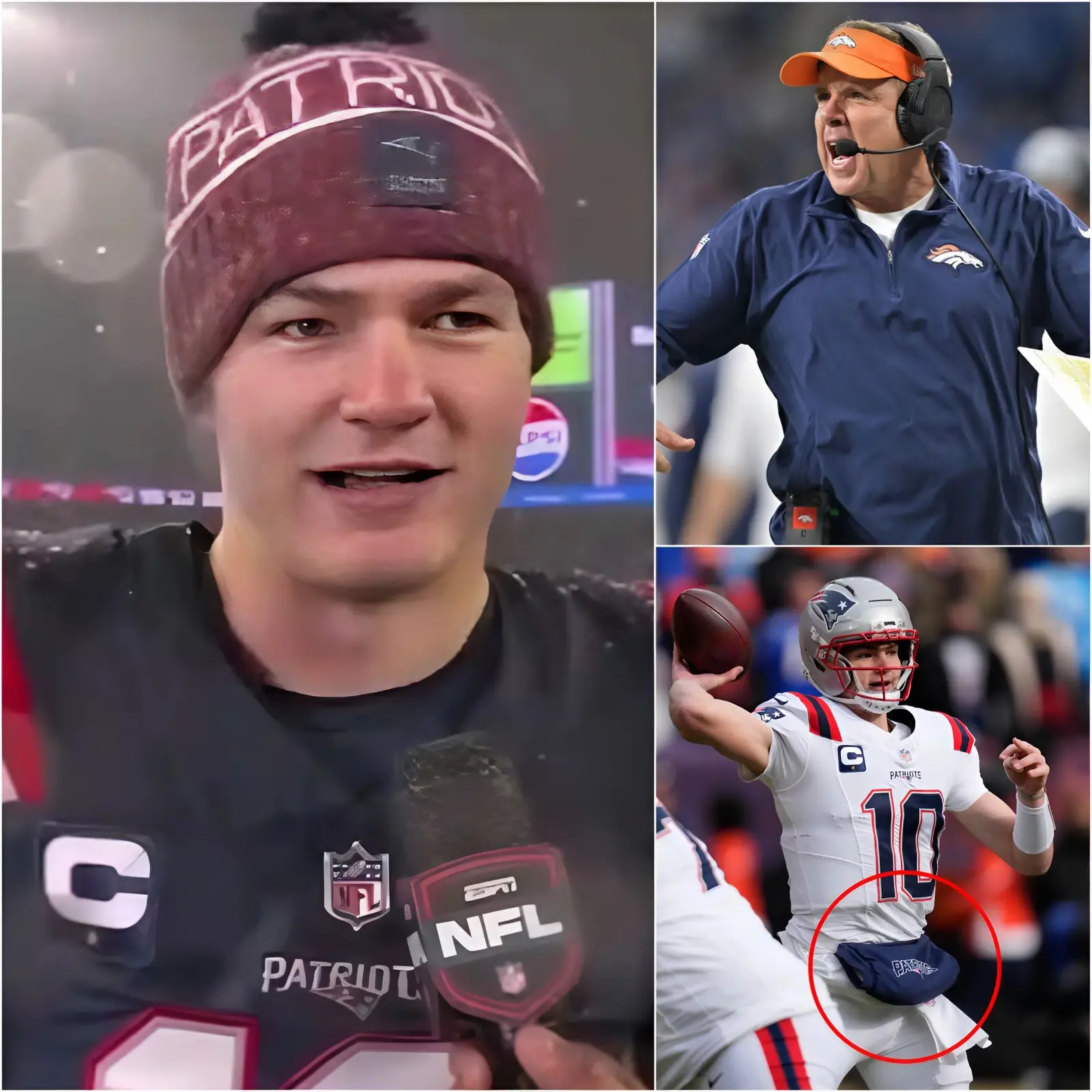 The accusation landed like a grenade in an already tense atmosphere. Fans in the stands erupted in a mix of boos, cheers, and stunned silence. Broncos players looked bewildered, unsure whether to pull their coach away or let the moment play out. Patriots personnel, meanwhile, appeared equally shocked but quickly formed a protective circle around Maye as security and officials moved in to de-escalate.