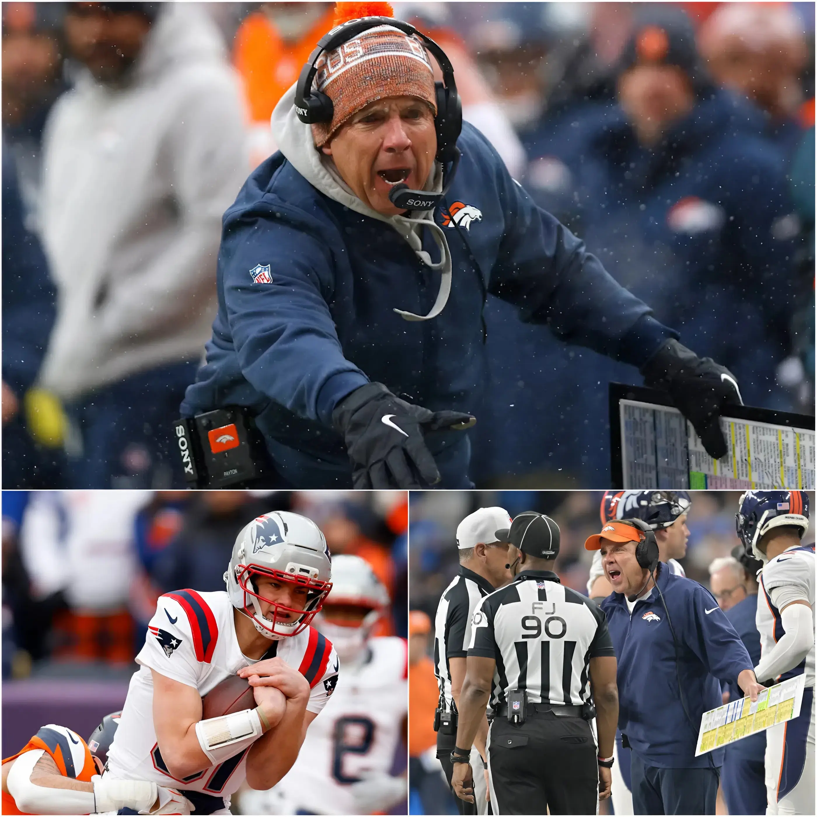 Denver, CO – In one of the most incendiary on-field confrontations in modern NFL history, Denver Broncos head coach Sean Payton erupted in full view of national television cameras, national television audiences, and 76,000 stunned fans at Empower Field at Mile High, accusing New England Patriots quarterback Drake Maye of electronic cheating moments after a soul-crushing 7-10 semifinal loss.