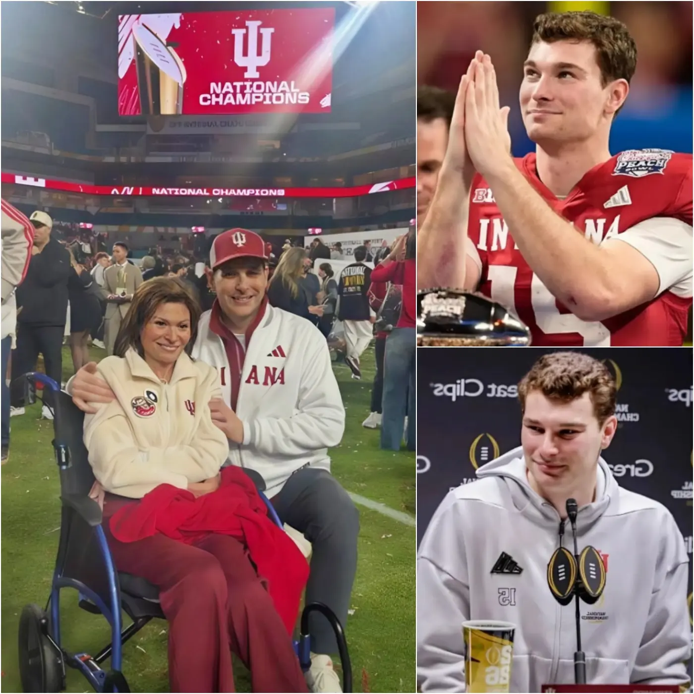 Fernando Mendoza Sr. remains seated in solidarity with his wife, Elsa Mendoza, who has lived with multiple sclerosis since 2007 and uses a wheelchair. For nearly two decades, their family has navigated the physical, emotional, and spiritual realities of a disease that reshapes daily life. Long before their son took snaps under center at Indiana, the Mendozas learned that love is not always loud. Sometimes, it is quiet endurance.