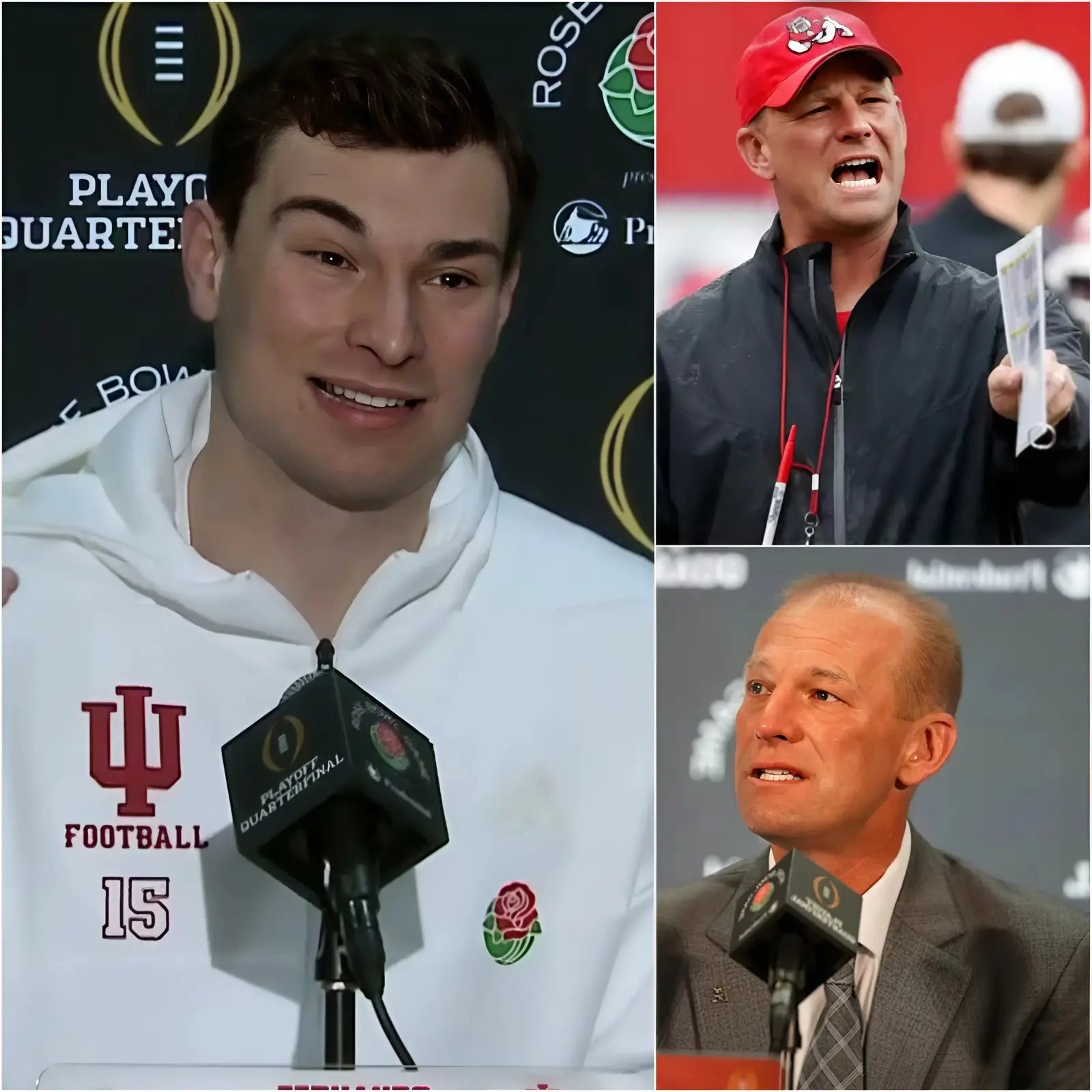 The words, exactly 15 in count, cut through the chaos like a knife. The Rose Bowl erupted—cheers from Indiana fans, stunned silence from Alabama supporters, and a wave of murmurs rippling through the press box.