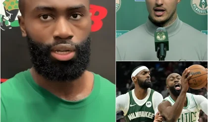 Jaylen Brown did not react the way many expected. There was no visible anger, no raised voice, no attempt to interrupt. Instead, there was a pause, the kind that makes a room uncomfortable because it signals intention. The cameras lingered, the panel members shifted in their seats, and the audience sensed that something different was about to happen. Brown’s expression hardened not with rage, but with resolve, the kind forged through years of scrutiny and expectation.