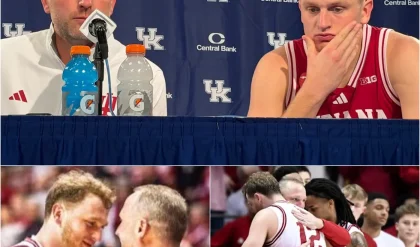 Instead of backing away, Tucker DeVries leaned slightly forward in his chair. His posture remained relaxed, his hands loosely clasped together, and his expression calm. The composure reflected the same steady leadership that has defined his reputation on the court in Bloomington.