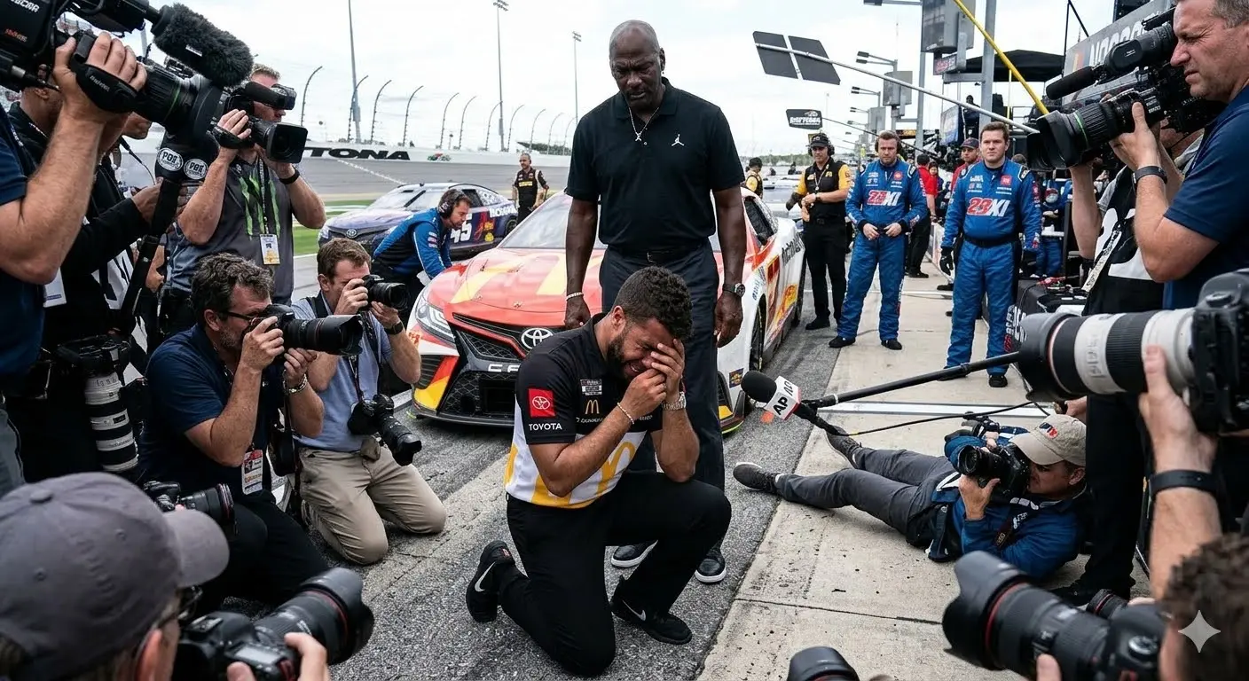 Yet while the public reaction was already intense, something unexpected was happening behind the scenes. Wallace is not only a NASCAR driver — he is also part of a team connected to one of the most legendary athletes in sports history, Michael Jordan. Jordan, widely regarded as one of the greatest competitors ever, has built a reputation for recognizing talent and pushing people to overcome adversity. According to sources close to the team, he had been watching the broadcast when Wallace delivered his emotional statement.