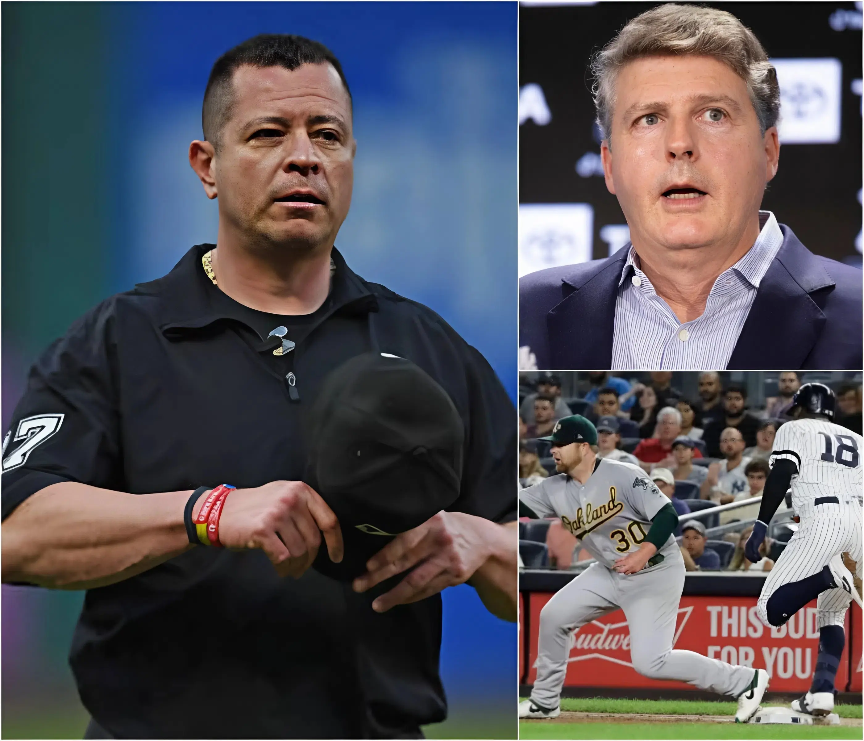 “I TRULY APOLOGIZE!” Those three words, spoken by umpire Carlo Torres, did more than acknowledge a mistake—they ignited a firestorm that has quickly become one of the most explosive controversies in recent MLB history. In a sport where umpires rarely admit fault publicly, Torres’ emotional apology sent immediate shockwaves throughout the baseball world. His voice reportedly trembled as he addressed the media, acknowledging that his decisions during the Yankees vs. Athletics game may have gone beyond simple human error. Instead, he hinted at something far more serious—calls that may have directly influenced the final outcome of the game.