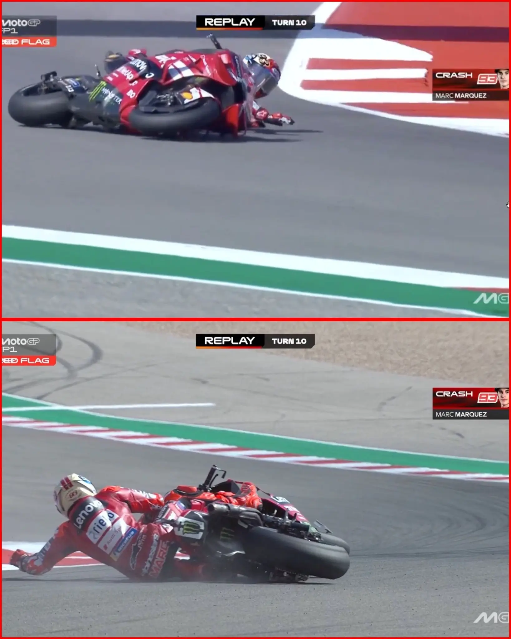 The timing of Bagnaia’s comments could not be more dramatic. Just hours before his remarks gained traction, Marc Marquez suffered a high-speed crash during Friday’s first free practice session at COTA. The Spaniard lost control at Turn 10 while traveling over 190 km/h, sliding across the gravel and hitting the barriers. Red flags were immediately deployed.