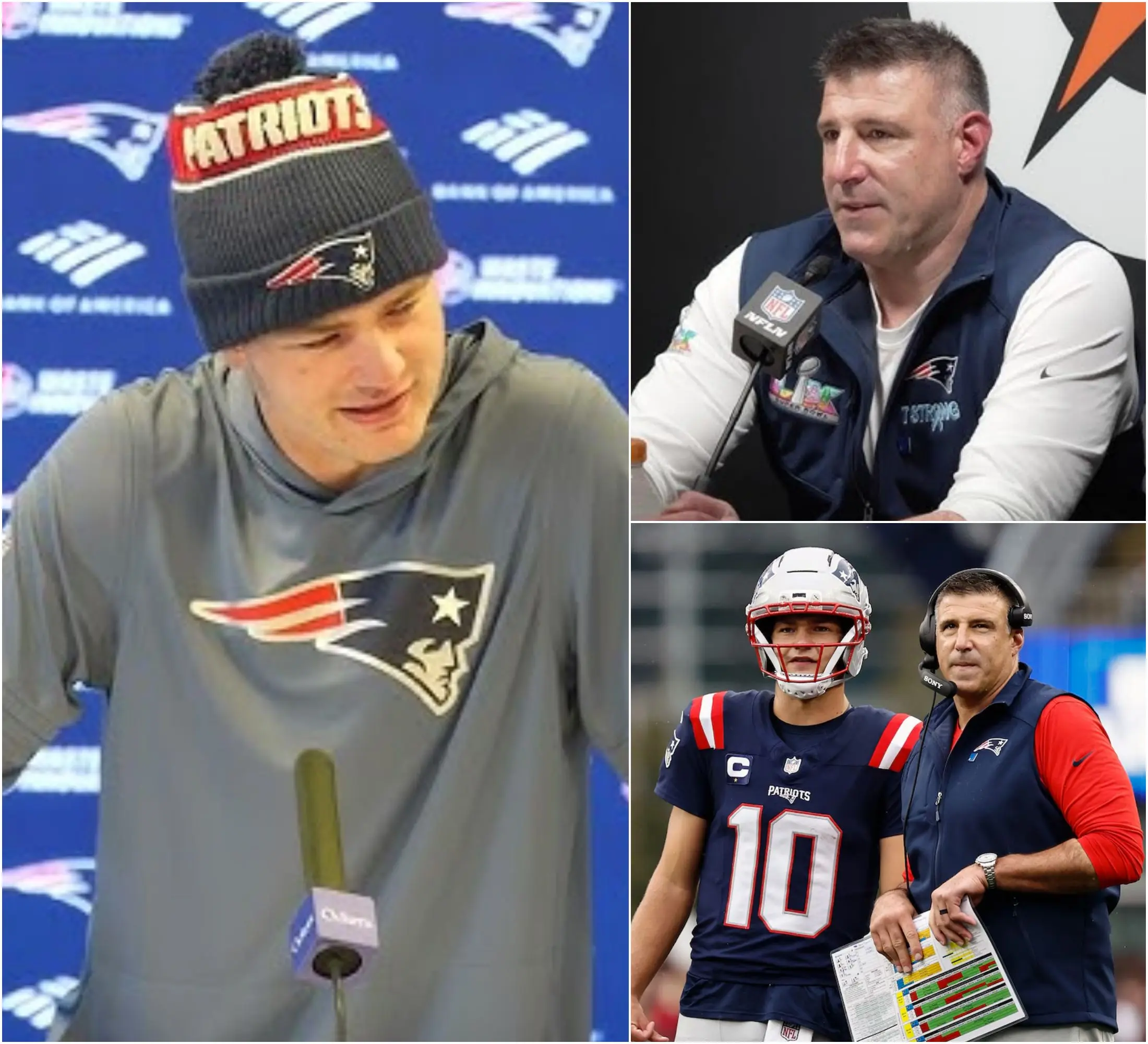 “If Mike Vrabel is still here, I’m gone!” Patriots star Drake Maye reportedly declared in a fiery post–Super Bowl moment, sending shockwaves through the media room. He hinted that deep disagreements over the team’s vision and offensive philosophy had pushed tensions past the point of repair. The stunning statement immediately fueled speculation about a fractured relationship at the heart of the franchise. Vrabel responded with a single, cutting remark that insiders say left the room in stunned silence—words that have yet to be fully revealed—leaving New England fans anxiously wondering what comes next for their team.