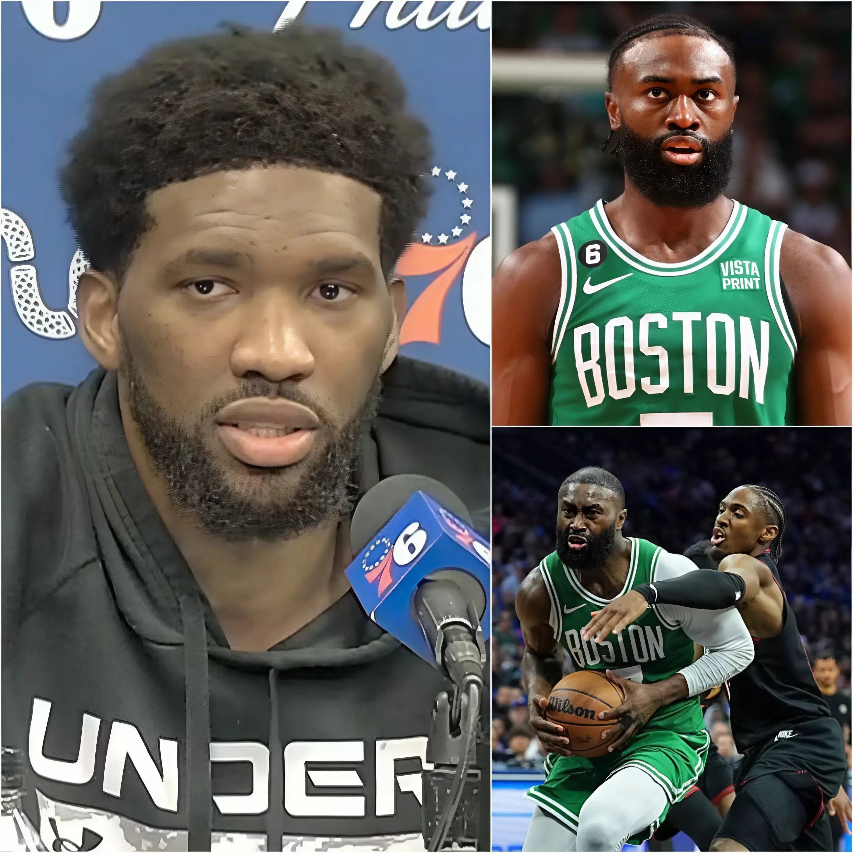 But Embiid didn’t stop there. He took his frustration a step further by turning his ire toward Celtics star Jaylen Brown. The two had been in a fierce on-court battle throughout the game, and it was clear that tensions were running high. Embiid, in a moment of anger, lashed out at Brown, calling the matchup “an insult to my career.” The comment struck like a thunderclap, reverberating throughout the media room and sending shockwaves across the NBA. Embiid didn’t just question the referee’s decisions; he was questioning the very legitimacy of the matchup with Brown.
