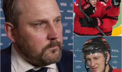 “We played the game, we won the game—fair, hard, and better,” Hughes said calmly, his voice carrying across the arena via nearby microphones. “If someone wants to blame speed, skill, or anything else instead of owning the scoreboard, that’s their choice. We earned this. Gold’s next—deal with it.” The words, concise yet cutting, hung in the air. Canadian and American fans erupted in cheers, flags waving wildly, while the Slovak bench stood frozen—faces pale, heads bowed, a mix of exhaustion and reluctant respect washing over them. No immediate comeback came; the moment belonged to Hughes.