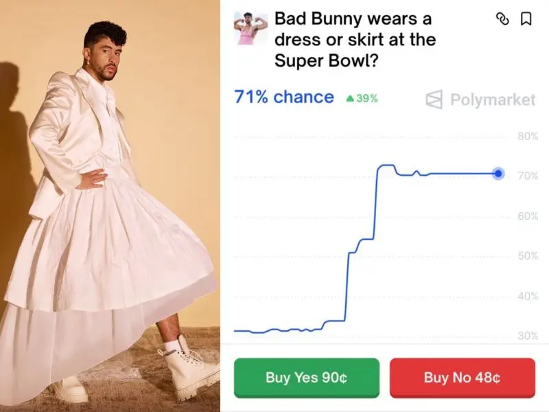 Rumors began circulating in mid-January 2026 that Bad Bunny planned to wear a dress or elaborate gown during his set, with anonymous “production sources” allegedly telling outlets like Marca and others that the outfit would serve as a “political thunderbolt disguised as couture.” Some reports framed it as a deliberate act of gender-bending fashion, in line with Bad Bunny’s history of challenging norms—seen in his past red-carpet appearances in skirts, nail polish, and other boundary-pushing looks. Social media exploded, with clips and mock-ups spreading rapidly.