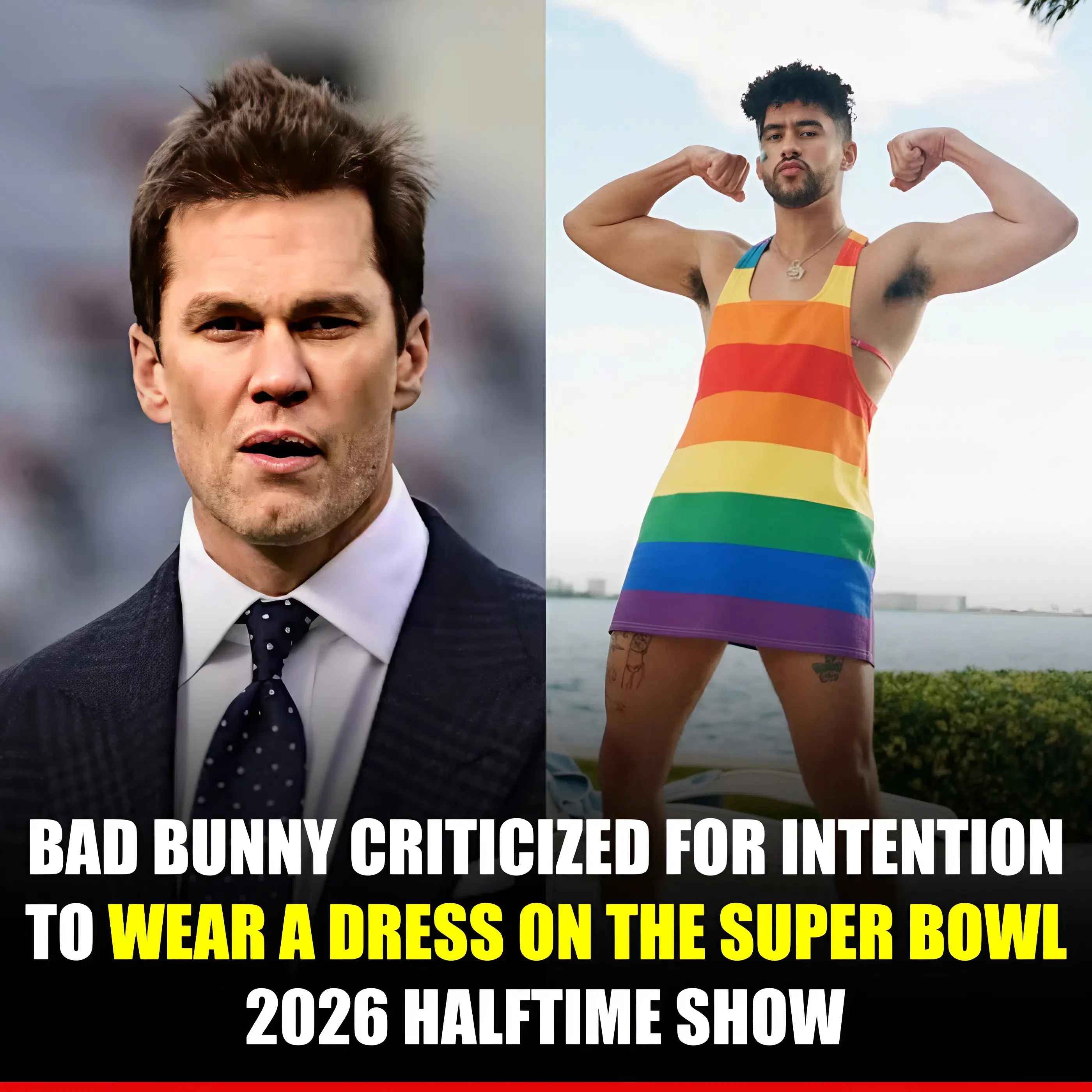 The sensational headline that has dominated sports and entertainment headlines in recent days—”BE A MAN, BE A MAN!” Football star Tom Brady protested against singer Bad Bunny wearing a dress on stage at the 2026 Super Bowl Halftime Show. “LOOK AT WHAT KENDRICK LAMAR DID IN 2025 AND LEARN FROM IT!”—captures a perfect storm of celebrity drama, cultural clash, and viral outrage.