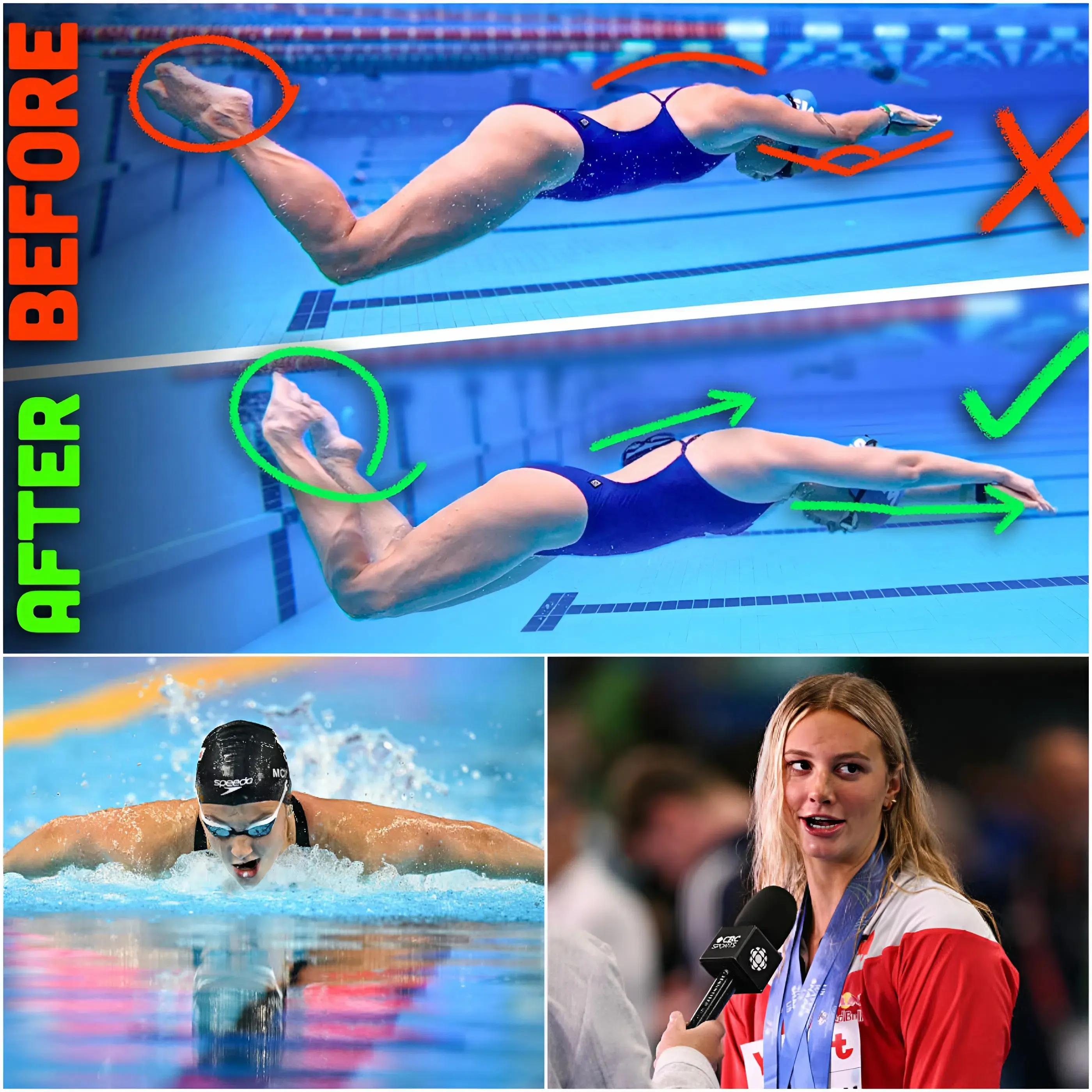 Summer McIntosh has once again captured the swimming world’s attention, but this time not with a record-breaking performance. In a fictional training revelation, the young superstar warned that a simple dolphin kick mistake is quietly limiting thousands of swimmers from reaching their true speed potential.