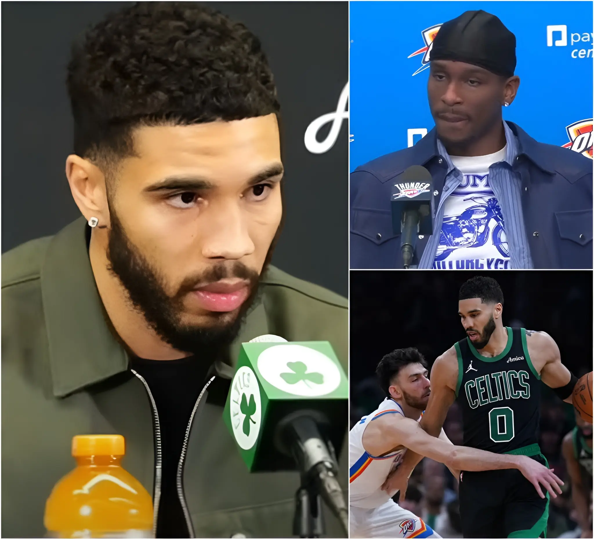 But what came next was even more dramatic: the response from Jayson Tatum during the postgame press conference. When asked about Shai Gilgeous-Alexander’s comments on the officiating, Tatum didn’t shy away. In fact, he came out with a sharp retort that would quickly go viral on social media, intensifying the debate even further. In his usual calm yet confident demeanor, Tatum fired back with a succinct, “We play through everything—good calls, bad calls, it’s all part of the game.” Those ten words, simple but impactful, immediately ignited heated debates across social media.