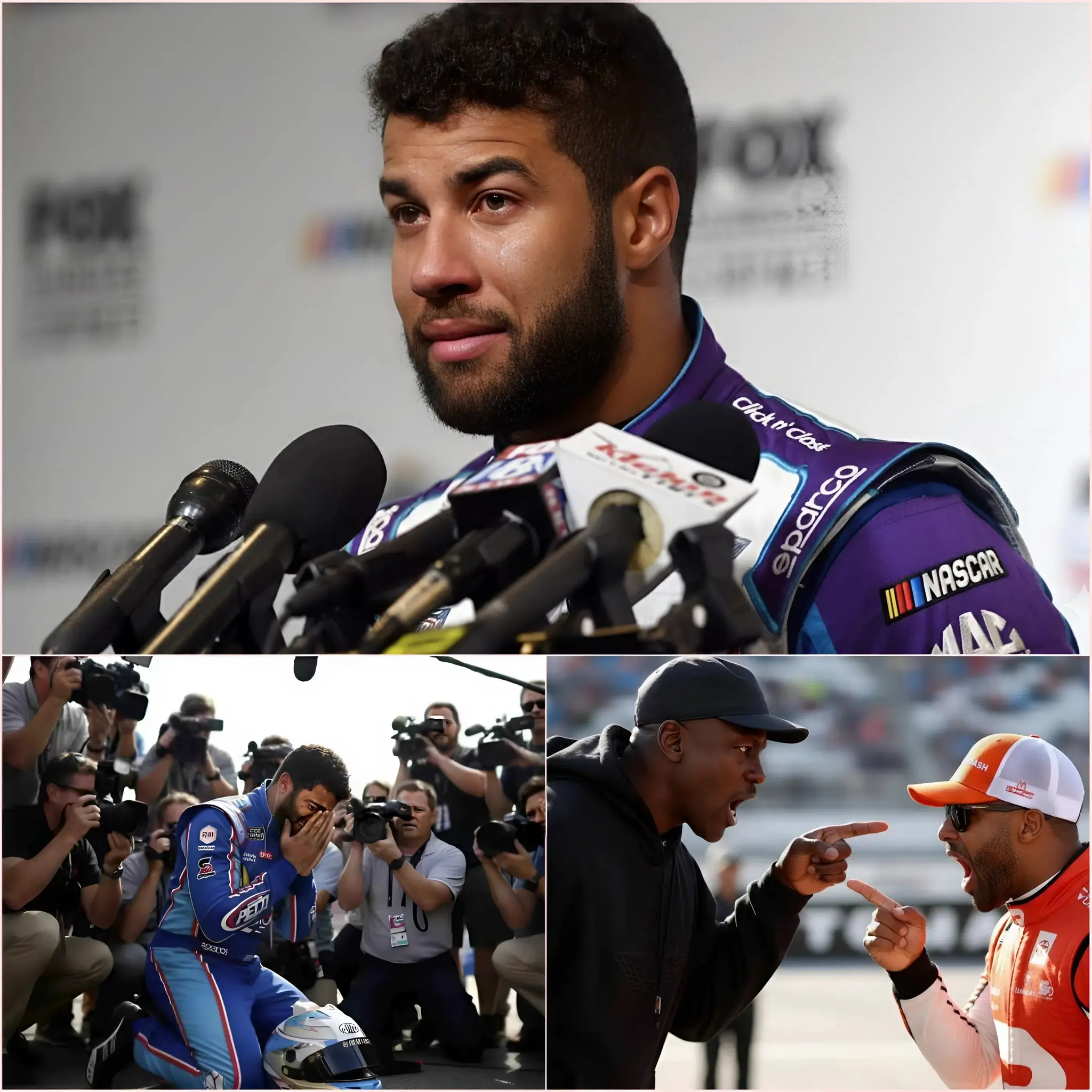 🚨“I’VE FAILED, THERE’S NO PLACE FOR ME IN AMERICA!” – Bubba Wallace broke down, sobbing as he announced his retirement live on television after the Daytona 500 disaster. While the world was reeling, Michael Jordan unexpectedly rushed into the tunnel, performing an unbelievable act. Wallace, trembling, uttered just 10 words that left millions of viewers speechless with shock. A shocking secret between the two was revealed, plunging NASCAR into an unprecedented earthquake.