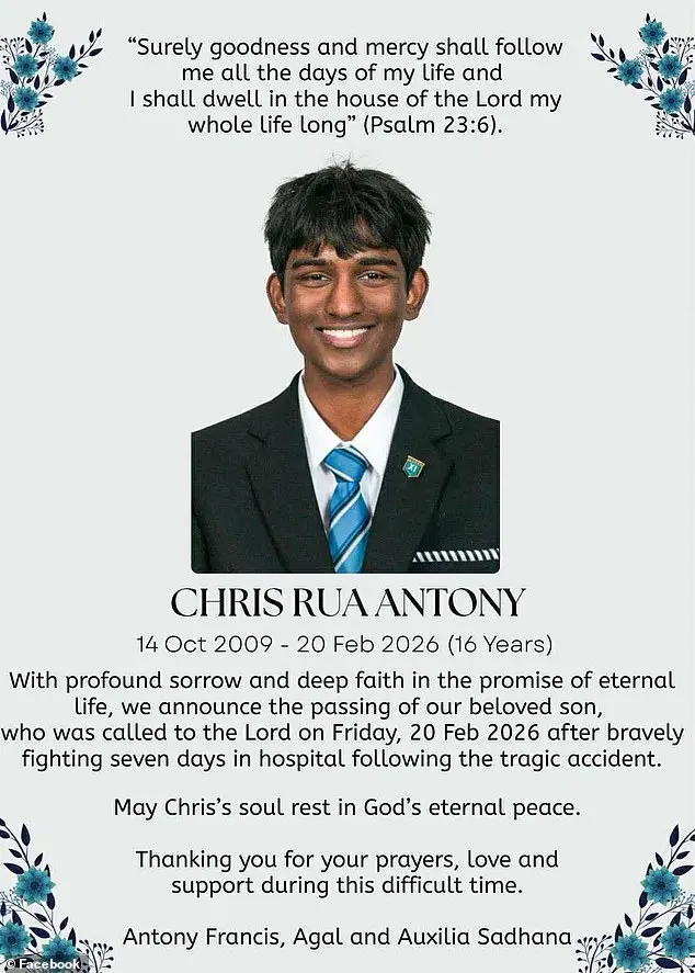 “Aryan was our light. He loved his little sister, he loved football, he loved learning. He was kind to everyone. We are broken, but we are so proud of the beautiful boy he was. Thank you to every doctor, nurse, paramedic and police officer who tried to save him. We will carry him in our hearts forever.”