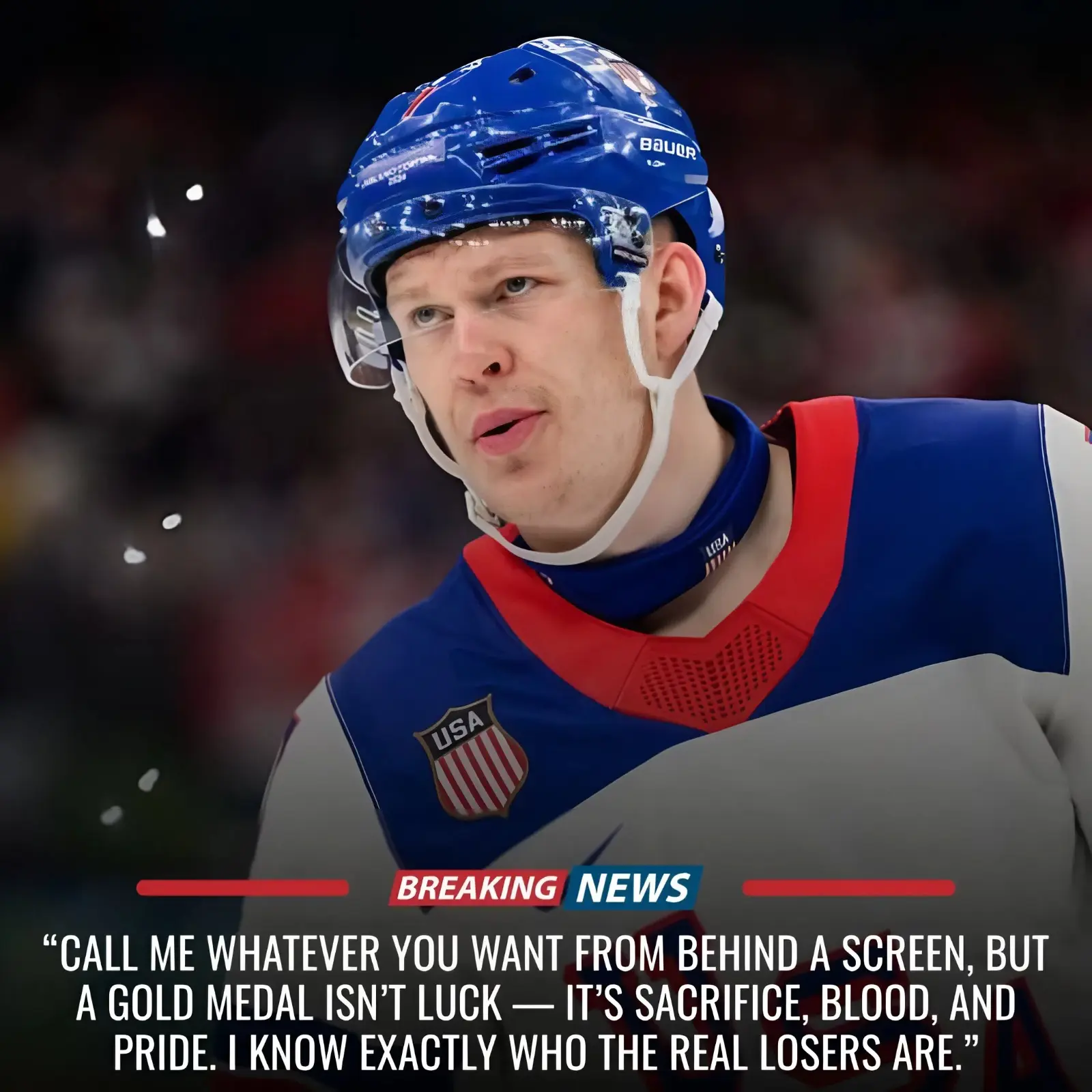 The comment in question—“winning a gold medal but still a loser”—was lobbed anonymously in the comments section of a post celebrating Team USA’s dramatic overtime victory over Canada in the 2026 Winter Olympics men’s hockey final. The gold-medal win, secured by Jack Hughes’ heroics in sudden-death and a heroic performance from goaltender Connor Hellebuyck, marked the first U.S. Olympic hockey gold in nearly half a century and ignited nationwide pride. Yet amid the jubilation, one sarcastic jab stood out for its personal sting, targeting Tkachuk directly despite his key contributions throughout the tournament.
