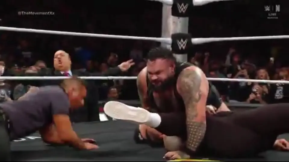 Bronson Reed’s Tsunami Splash is a sight to behold—a 330-pound man launching himself from the top rope with precision and power. On this night, it landed perfectly on Jimmy’s prone body, shaking the ring upon impact. The referee’s three-count sealed the victory for The Vision, though many fans argued the win was “stolen” due to Paul’s illegal tactics.