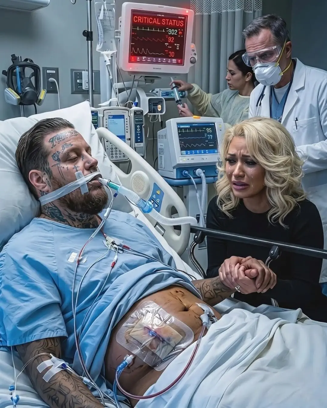 Jelly Roll, the popular American country-rap singer, has just shared a chilling update on his social media, confirming weeks of rumors that had left fans on edge. The photo, posted just 20 minutes ago, shows the artist in a hospital bed, looking visibly exhausted and fragile. The post has sent shockwaves through his fanbase, many of whom had been anxiously waiting for some confirmation after months of whispers and speculations about his health.